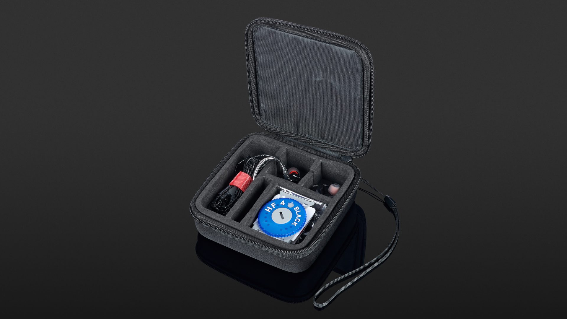Ausgeliefert werden die HL4330 mit einem robusten kleinen Reißverschluss-Case, das mit relativ harten Schalen und einem Nylonbezug ausgestattet ist. Eine Handschlaufe sorgt dafür, dass das Suchen nach dem Zipper ausbleiben kann. Im Case werden die In-Ears samt Wechselkabel in getrennten Fächern untergebracht. Leider muss die ans Ohr angepasste Biegung dabei stets aufgebogen werden, wenn die Kopfhörer im Case verstaut werden. Ein Beutelchen aus Jeans mit Kordelzug, ein vergoldeter 6,3-mm-Klinkenadapter und ein Reinigungstuch liegen ebenfalls bei. Ergänzt wird der Lieferumfang durch gleich sechs Paar Ohrpassstücke aus Silikon und Memory-Schaumstoff in je drei Größen. Nicht zuletzt liegen auch noch zwei Spezialbehälter mit Wechselfiltern bei, die im Inneren der Kopfhörer-Gehäuse ersetzt werden können. Um die Filter mühelos austauschen zu können, ist am Behälter der Wechselfilter ein Stäbchen befestigt, das mit Gewinde- und Greif-Enden als Spezial-Tool dient. Dank der beiliegenden Beschreibung klappt der Wechsel der Filter im Test kinderleicht, so dass im Handumdrehen für Hygiene und guten Sound gesorgt ist.