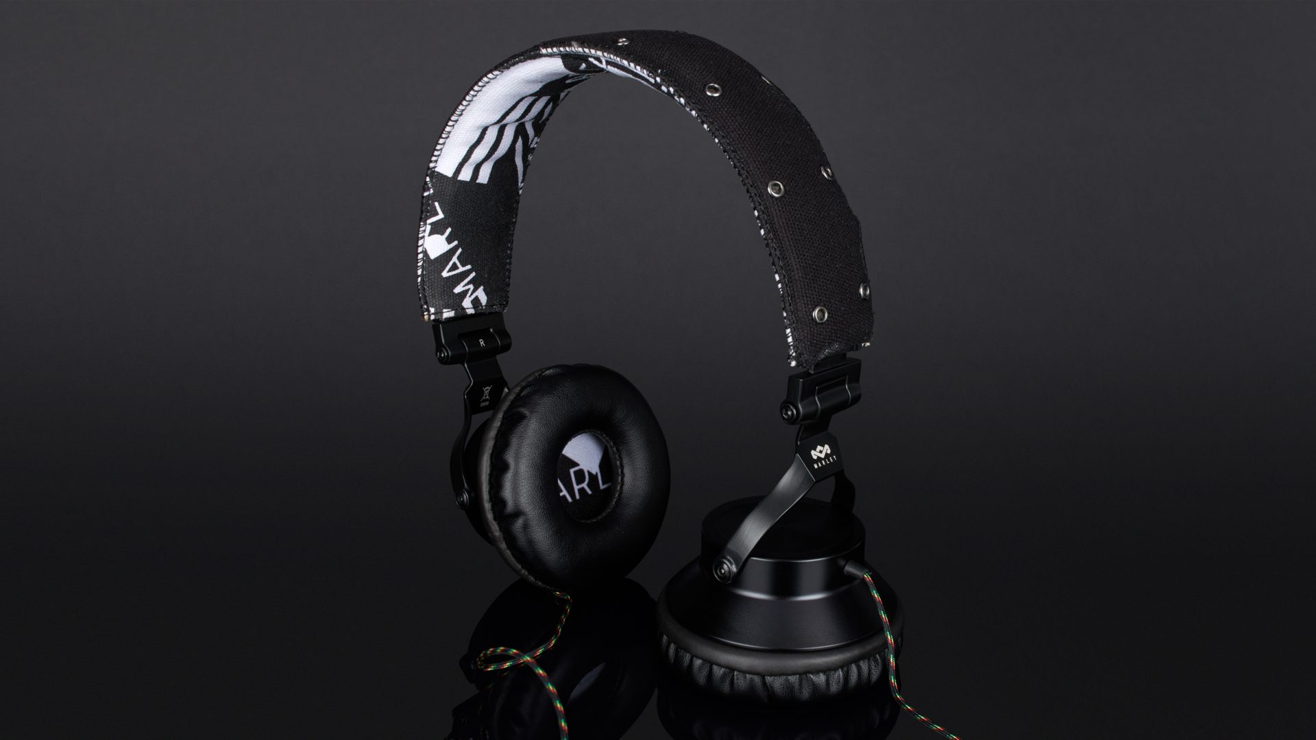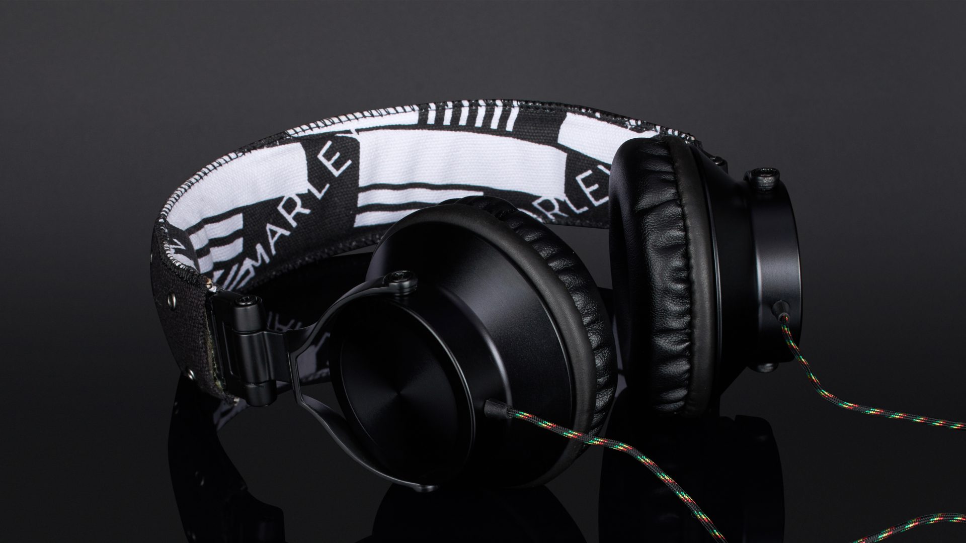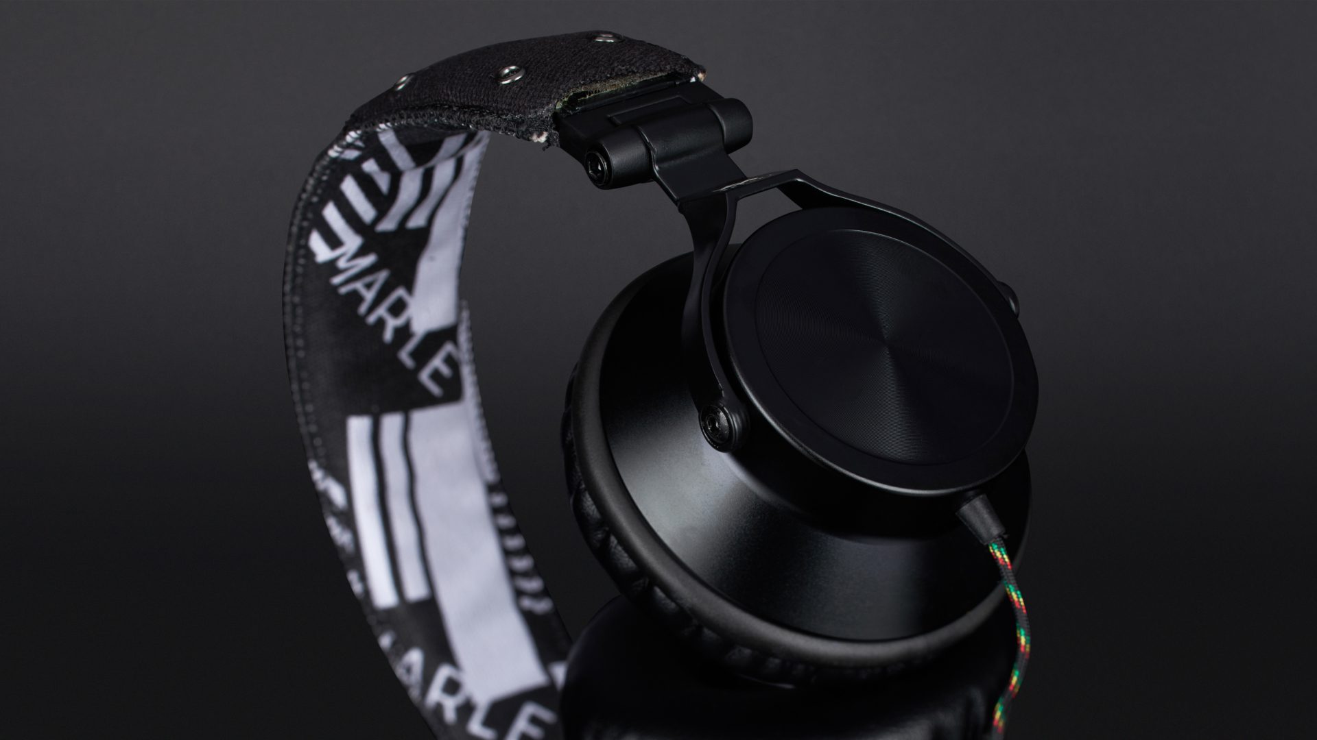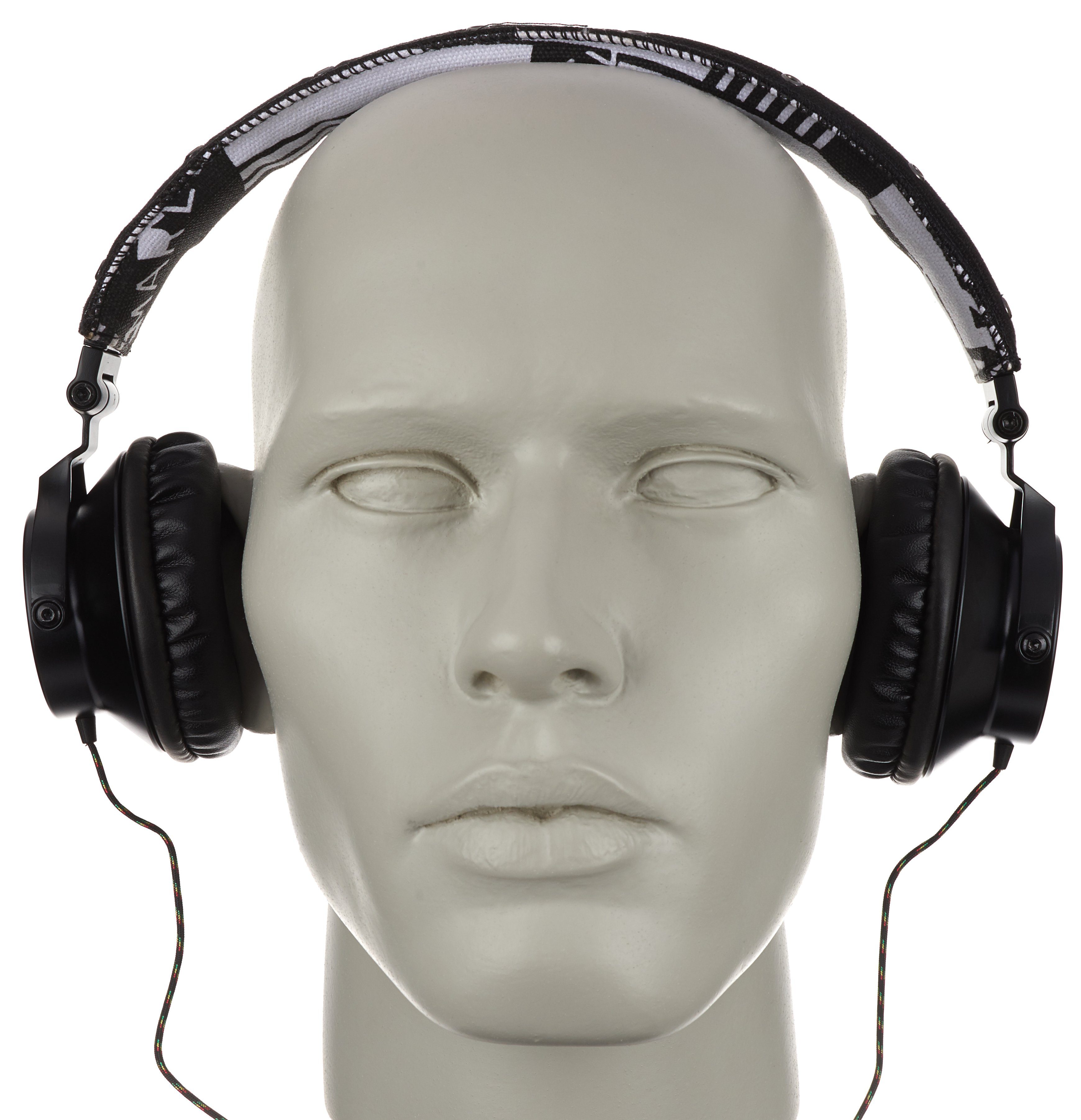 Das Produkt beginnt mit der Verpackung, und die gibt bis auf „40-Millimeter-Treiber“ keinerlei Infos zu den technischen Spezifikationen preis. Der Hörer ist ein ohraufliegendes Modell mit dynamischem Wandlerprinzip und 16 Ohm Impedanz. Das beidseitig geführte, Reggaefarben stoffummantelte, dünne Kabel trifft nach etwa 30 Zentimetern auf die Fernbedienung und endet nach 1,5 Metern in einem Winkelstecker. Bügel, Gondelgabel und Chassis sind aus teils etwas kantigem Metall gefertigt, die Gelenke etwas schwerfällig. Der Ohrbeschaller lässt sich zum Transport in der mitgelieferten Bekenner-Tasche zusammenfalten. Mit 30 Millimetern Extralänge pro Seite – das ausziehbare Rasterband sitzt in einer Kunststoffschiene – ist der Marley nichts für Dickköpfe. Hat der 247 Gramm schwere Proband auf dem Haupt Platz genommen, sitz er dort ziemlich fest, für meinen Geschmack übt er jedoch einen zu hohen Anpressdruck aus, um auf Dauer damit glücklich zu sein. Der Leinenbügel ist obendrein nicht sonderlich stark gepolstert. Die Kante ist hart. Damit möchte ich, um den Hals gehangen, im Flieger nicht einnicken.