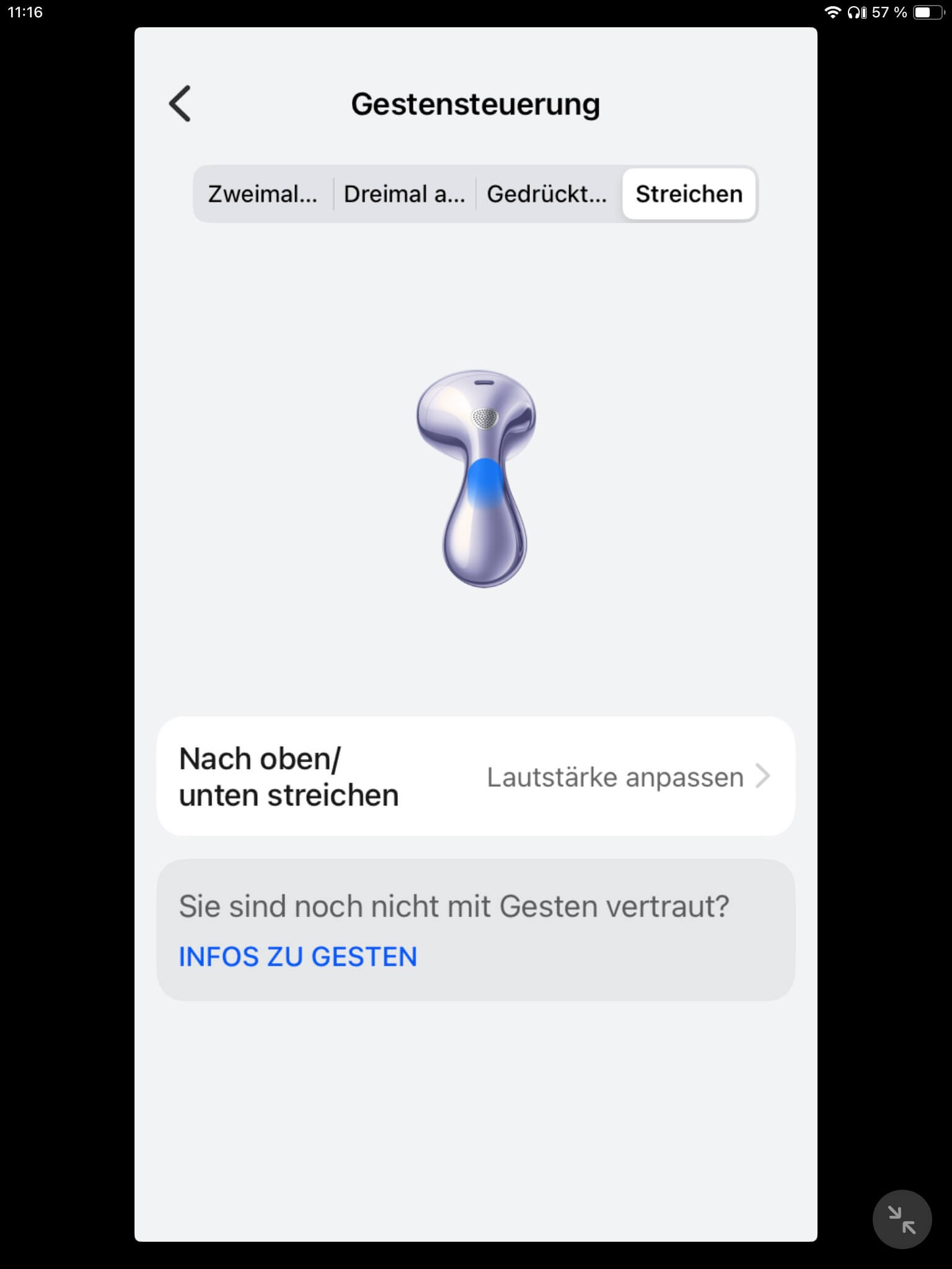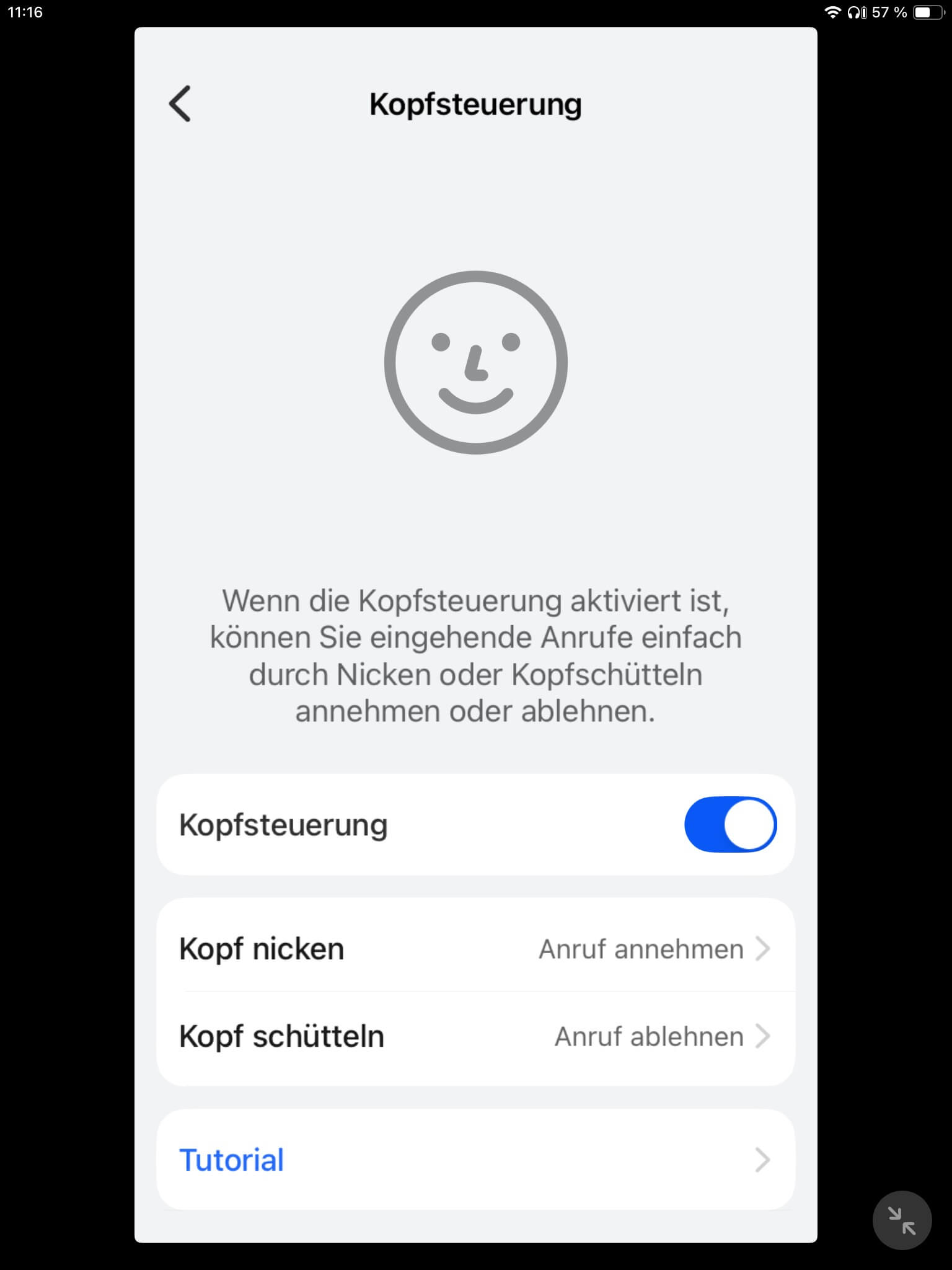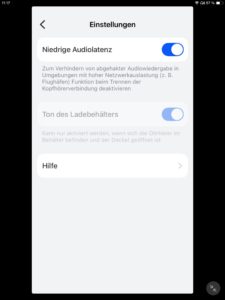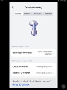 Zuschaltbar ist auch eine Kopfsteuerung bei Telefonaten, wodurch ein Nicken zum Annehmen und ein Schütteln zum Ablehnen dient, was zuverlässig erkannt wird und überaus praktisch ist. Der Low-Latency-Modus lässt sich jedoch nicht direkt über die Hörer steuern. Ebenfalls vermisst werden kann ein manuelles Ein- und Ausschalten, wodurch das Case stets benötigt wird. Unterstützt wird jedoch eine einseitige Nutzung im Single-Betrieb und wer möchte, kann die Trageerkennung der Earbuds nutzen.