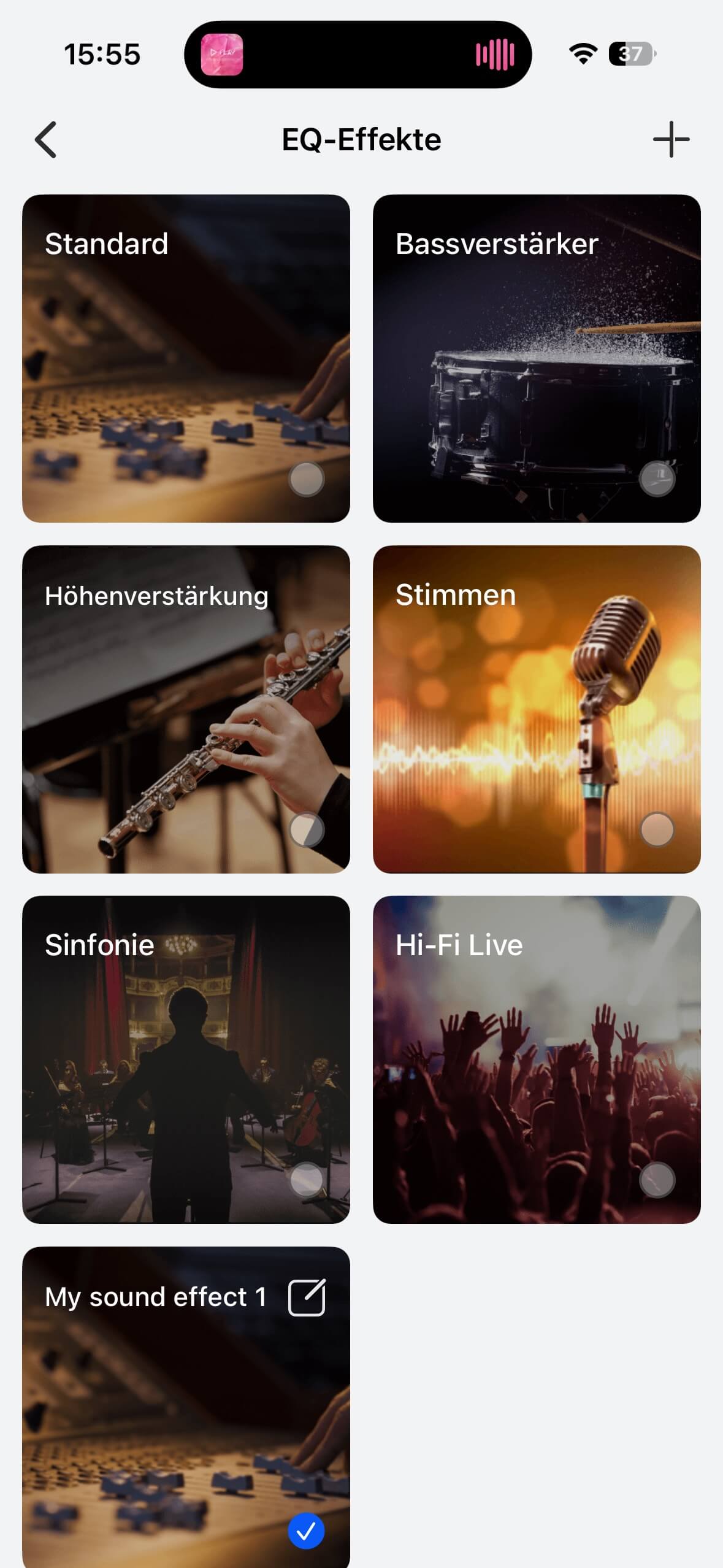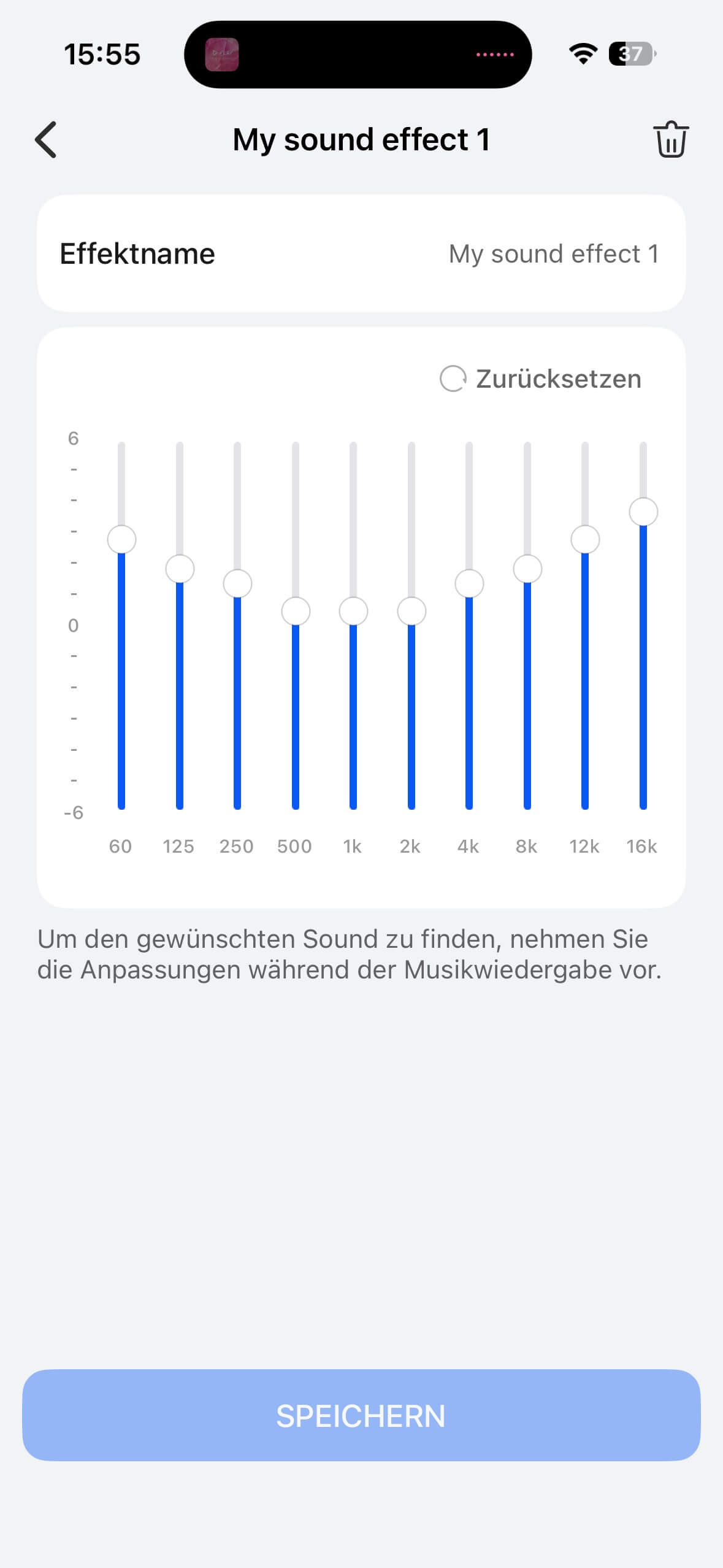Es folgt Spatial Audio, dessen Raumwirkung über vier Charakteristiken (Standard, Theater, Kino, Konzertsaal) einstellbar ist. Das Headtracking kann dabei separat zu- oder abgeschaltet werden. In der Equalizer-Sektion ermöglichen sechs Presets eine schnelle Anpassung. Eigene klangliche Vorstellungen können dann noch über den 10-Band-EQ justiert und gespeichert werden.