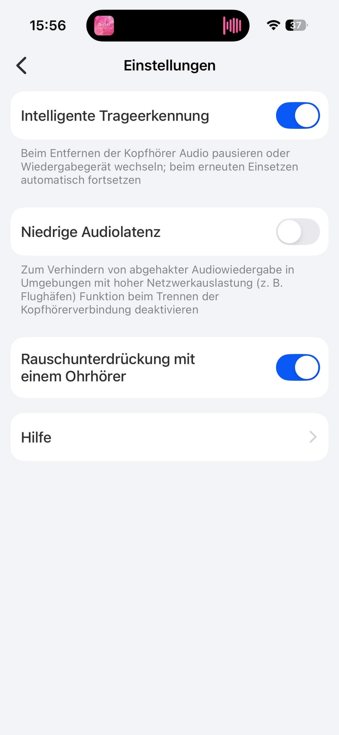 Darüber hinaus gibt es einen Passtest für den optimalen Sitz der In-Ears, die Möglichkeit, Steuerungsgesten an den Buds individuell zu verteilen, Kopfgesten zu aktivieren – womit sich ankommende Anrufe herbeinicken oder wegschütteln lassen. Verlorene Buds in der Sofaritze, die noch verbunden, aber unauffindbar sind, können über „Gerät finden“ mit einem Tonsignal auf sich aufmerksam machen. Des Weiteren können Updates angestoßen und die Audiolatenz fürs Gaming verringert werden.