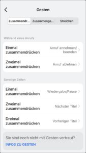 Über die AI Life App ist zwar der Sprachassistent nachrüstbar, ansonsten sind die Funktionen jedoch fest zugewiesen und können lediglich (de-)aktiviert, aber nicht frei konfiguriert werden. Ergänzend zur drucksensitiven Steuerung verfügen die In-Ears noch über eine zuverlässig reagierende Trageerkennung, die sich per App wunschgemäß ein- oder ausschalten lässt.