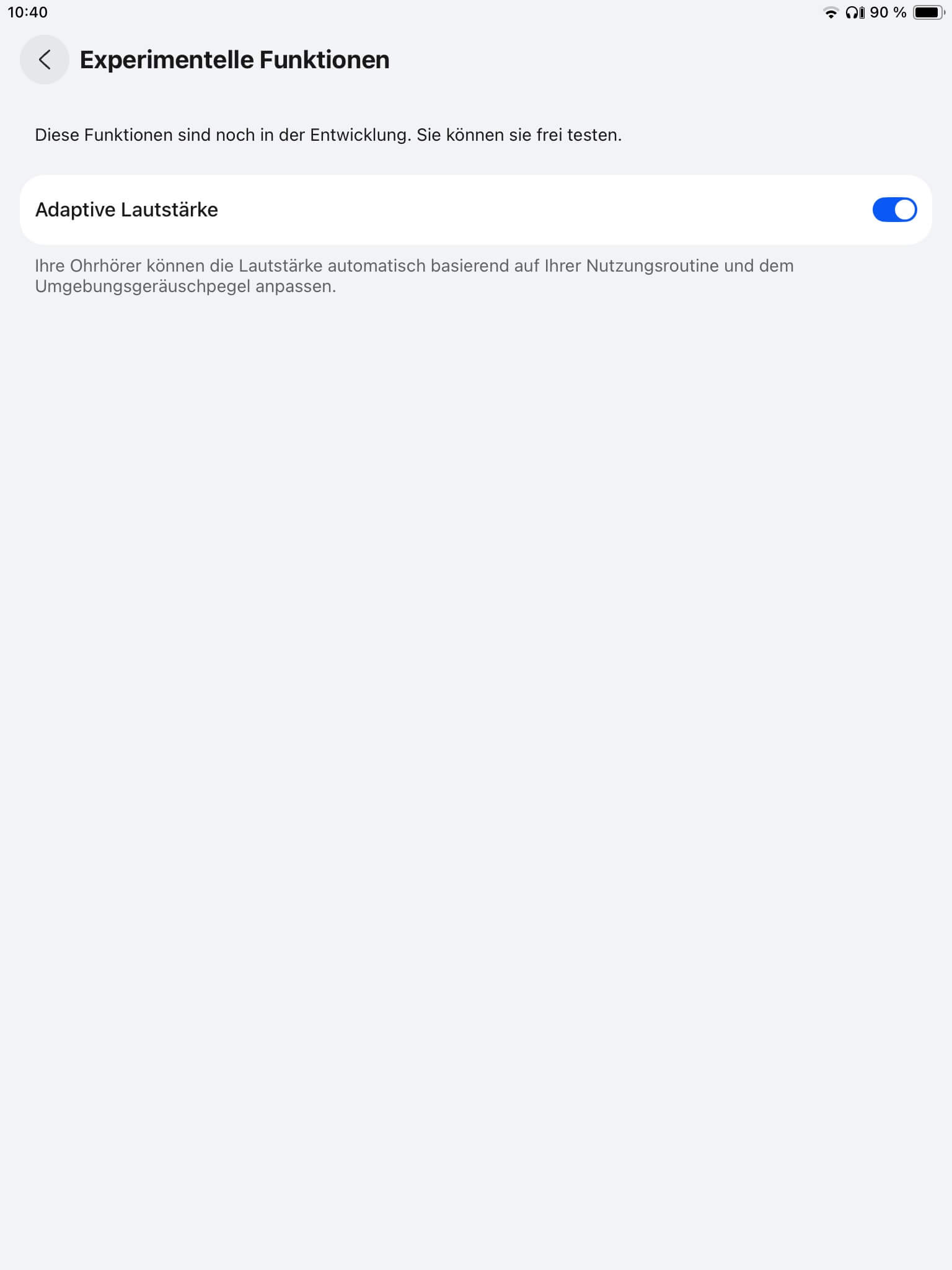 Darüber hinaus kann eine Suchfunktion beim Auffinden der Hörer behilflich sein. Zuschaltbar ist außerdem die adaptive Lautstärkeanpassung, welche sich zum Release noch in der (fortgeschrittenen) Testphase befindet. Abschließend lässt sich über die App noch die Firmware der Hörer aktualisieren.