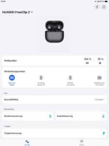 Das stilprägende C-Bridge-Design erreicht bei den Huawei FreeClip 2 ein neues Level und kann bei Handhabung, Bedien- und Tragekomfort zweifelsfrei überzeugen. Eine große Stärke besteht beim Kommunizieren, da es den technischen Lösungen gelingt, dass sich beide Gesprächsseiten auch bei Wind und Lärm mühelos verstehen. Darüber hinaus bieten die leichten Open-Ears eine erstaunlich kraftvolle Wiedergabe mit hohen Lautstärkereserven, auch wenn sich aktuell noch ein Manko bei bassstarker Club-Musik entpuppen kann.