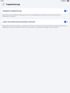 Die optionale Kopfsteuerung bei Telefonaten ermöglicht das Annehmen per Nicken und Ablehnen durch Schütteln. Darüber hinaus sind die Hörer mit einer Trageerkennung ausgestattet, die sich ebenfalls nach Bedarf über die App ab- oder zuschalten lässt. Außerdem besitzen die Hörer keine feste Links-Rechts-Zuordnung, da auch die Seite automatisch erkannt und der Stereokanal angepasst wird, was äußerst praktisch ist und einwandfrei funktioniert.