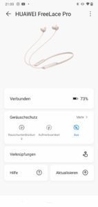 Die FreeLace Pro kommen ab Werk mit einem kraftvollen und knackigen Bass, der ein solides Fundament bildet, auf das sich die Mitten in guter Detailarbeit warm und breit entfalten können, worüber die Höhen anfangs leider etwas überreißen. Das kann man aber gut mit ein paar EQ-Settings einfangen und optimieren, so dass der Sound dann aus den 14-mm-Treibern wuchtig, transparent, angenehm offen und gut durchdringbar in die Ohren gelangt, wo er gut und warm klingt und dabei kaum ermüdet. Ein langer Druck auf die Rückseite des linken In-Ears aktiviert die Geräuschunterdrückung, die zunächst einmal – dabei zart rauschend – das Bild etwas fülliger zu den Mitten hin verschiebt, was fast noch besser klingt als ohne ANC. Was das ANC dann an Außengeräuschen eliminiert kann man getrost als „das Übliche in dieser Klasse“ bezeichnen. Soll heißen, dass von dem brummigen Straßenlärm nur das hohe Rauschen zu den Ohren gelangt und die rumpelnde Straßenbahn nicht mehr rumpelnd, sondern nur noch sirrend abfährt. Das ist in Ordnung, solide und Stand der Technik soweit.
