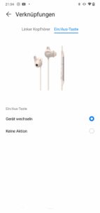 Das Nackenband der In-Ears ist gummiert und hinterlässt auf der Haut ein angenehmes Tragegefühl. Links und rechts der Zuleitungen zu den Kopfhörern befinden sich zwei metallen lackierte Blöcke, von denen einer den Akku für die angegebene Laufzeit von 24 Stunden beherbergt, auf der anderen Seite die Steuerungs-Taster für Volumen und Skip, Start/Stop/Anrufe sowie Hauptschalter aufgebracht sind. Der Clou ist nun: Zieht man die FreeLace Pro an dieser Seite auseinander, kommt eine USB-C Stecker zum Vorschein, den man z.B. in ein Notebook oder ein Smartphone mit USB-C-Anschluss stecken kann und so die Kopfhörer auflädt. Für ältere Anschlussfälle gibt es einen USB-C- auf USB-A Adapter. Über diesen Weg lässt sich auch die Kopplung vollziehen, was Huawei „HiPair“ nennt. Allerdings wird das nur von einigen Huawei und Honor Smartphones unterstützt, die mindestens auf EMUI 9.1 aktualisiert werden können. Ansonsten kann man natürlich auch ein traditionelles Pairing über Bluetooth 5.0 machen, was sicher und zuverlässig funktioniert.