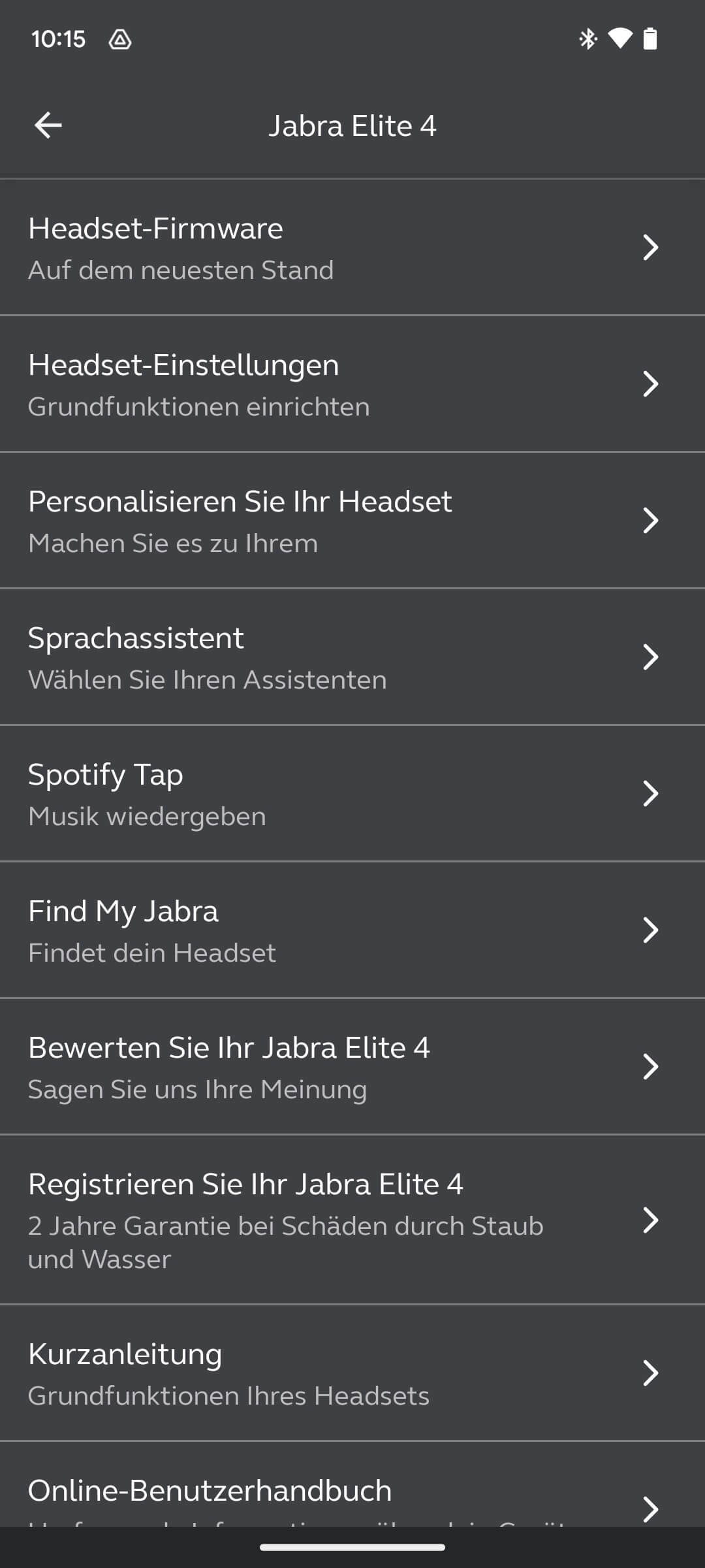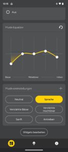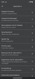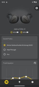 Was für die Elite 3 gilt, gilt auch für die 4er: Dank App-Anbindung können die Kopfhörer zumindest in Teilen konfiguriert werden. Die kostenlose App für iOS und Android erlaubt u.a. die Änderung des linken Doppeldrucks zwischen Spotify und Alexa/Sprachassistenz (nur Android!). Hier könnt ihr auch entscheiden, ob ihr zwischen ANC und HearThrough, zwischen HearThrough und „Aus“ oder zwischen alle drei Funktionen schalten wollt.