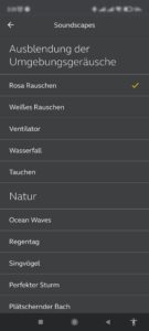 ANC und Tastenfunktionen lassen sich hier ebenfalls kinderleicht individuell justieren – genauso wie die Wahl des Sprachassistenten. Ein wenig überraschend ist das Soundscapes-Feature der App. Es gibt Geräuschkulissen zum Entspannen und Einschlafen wieder. Wird hier Audio abgespielt, verliert die vorige Medienanwendung leider ihren Fokus. Damit die Tastenfunktionen der In-Ears wieder Spotify & Co. steuern können, muss die entsprechende App zuvor erneut in den Vordergrund geholt werden.