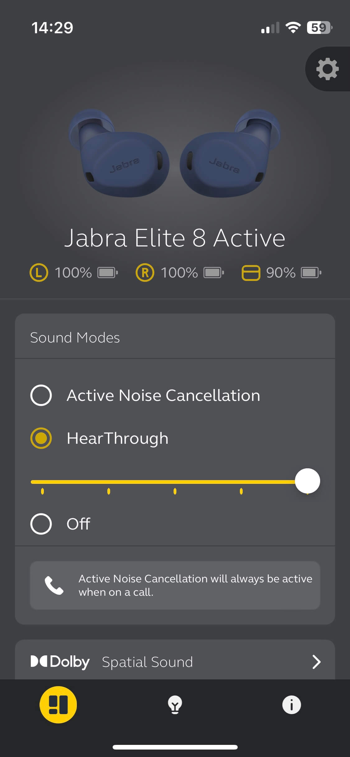 Die Unterstützung von Dolby Atmos zählt sicherlich zu einem der Highlights der Jabra Elite 8 Active. Hier fehlt allerdings das Head Tracking Feature, welches dem Top-Modell Jabra Elite 10 vorbehalten ist.