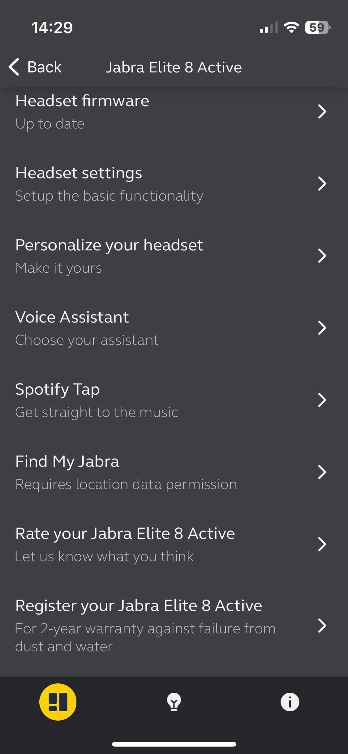Sidetone, also das Hören der eigenen Stimme während eines Telefonats, ist standardmäßig aktiviert und kann hier ebenso ein-/ausgeschaltet und in fünf Stufen eingestellt werden. Wer seine Kopfhörer verlegt hat, findet via „Find My Jabra“ besagte Stöpsel per Map und Hinweistönen wieder. Die Möglichkeit, Firmware-Updates aufzuspielen, den Akkustand abzulesen oder via Kurzanleitung die Grundfunktionen der Hörer kennenzulernen, runden den Funktionsumfang ab.