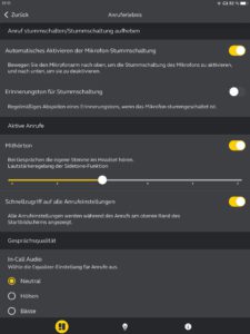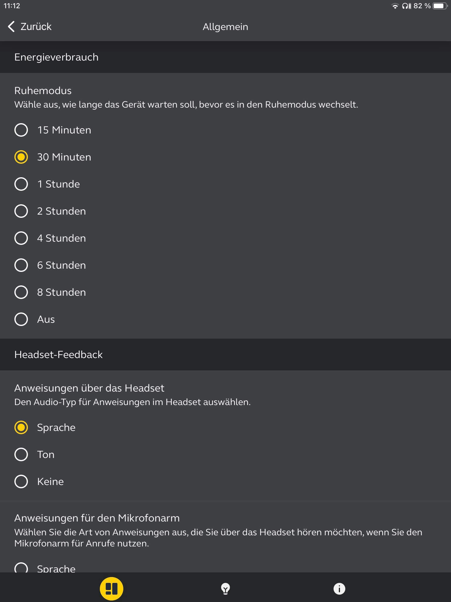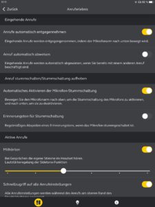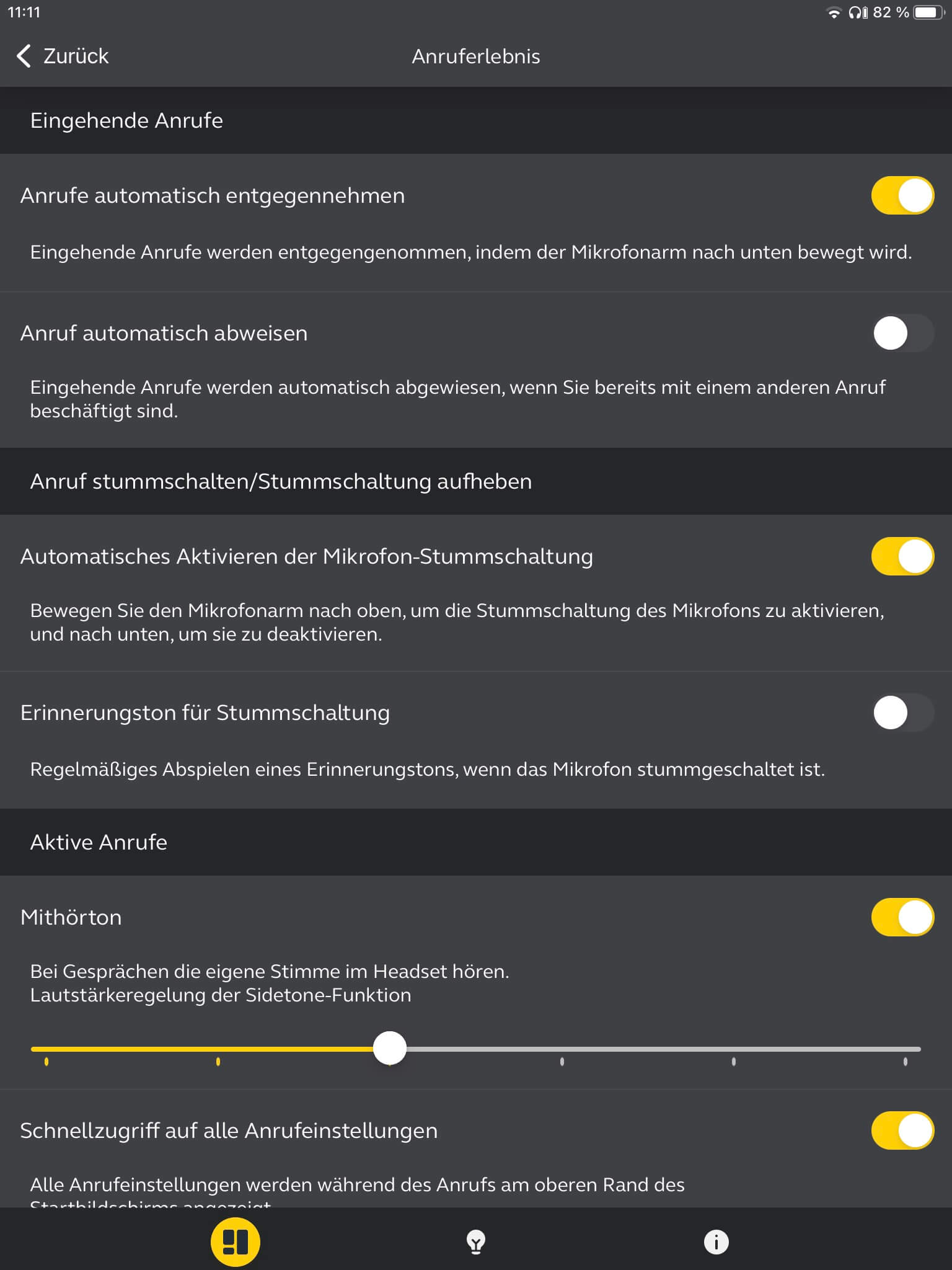 Für die Medienwiedergabe ist das Headset mit einer 3-Tasten-Remote ausgestattet, die zum Steuern der Wiedergabe sowie zur Lautstärkeregelung und Titelauswahl dient. Zudem kann die Mikrofontechnik und das Busylight über die Remote-Taster manuell ein- und ausgeschaltet werden. Ein zusätzlicher ANC-Taster schaltet hingegen zwischen dem Grundmodus und der Geräuschunterdrückung um und ermöglicht das Aktivieren von Sprachassistenten wie Siri, Google Assistant oder Amazon Alexa. Eingehende Anrufe lassen sich darüber hinaus entweder über den zentralen Taster auf der rechten Schalenoberfläche oder das Herunterklappen des Mikrofonarms annehmen. Dabei kann der Mikrofonarm während des Gesprächs auch zum Stummschalten der Mikrofone genutzt werden, wenn die Funktion zuvor in den Headset-Einstellungen der App oder Software aktiviert wurde. Bei der MS Teams-Version unterstützt der Schalentaster zudem weitere Funktionen wie das Teilnehmen an einem aktiven Meeting oder das Anzeigen von Voicemails und verpassten Anrufen. Dabei erfolgt die Bedienung insgesamt zuverlässig und ohne Versatz. Gut umgesetzt wurde zudem, dass sich der Mikrofonarm im hochgeklappten Zustand vollständig außerhalb des Sichtfeldes befindet und bei der Bildschirmarbeit nicht behindert.