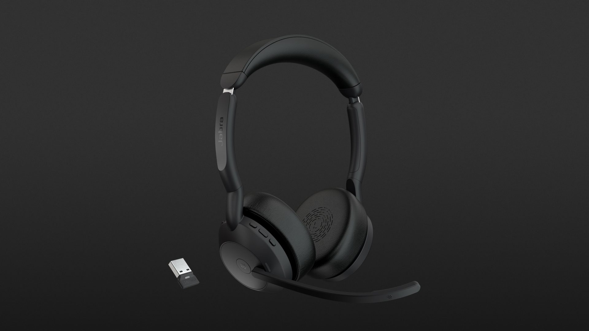 Das Evolve2 55 wird von Jabra in unterschiedlichen Konfigurationen als Mono- oder Stereo-Version angeboten. Unterschiede bestehen beim Anschluss, indem eine USB-A- oder USB-C-Ausführung mit entsprechendem Bluetooth-Adapter und Ladekabel zur Auswahl stehen. Darüber hinaus ist eine Variante für Microsoft Teams zertifiziert, wohingegen das UC-Modell auf Google Meet, Zoom und gängige Unified Communications-Plattformen zugeschnitten ist. Wer möchte, kann das Headset zudem als Bundle mit einer Ladevorrichtung für den Schreibtisch erwerben, wobei die Dockingstation auch separat erhältlich ist.