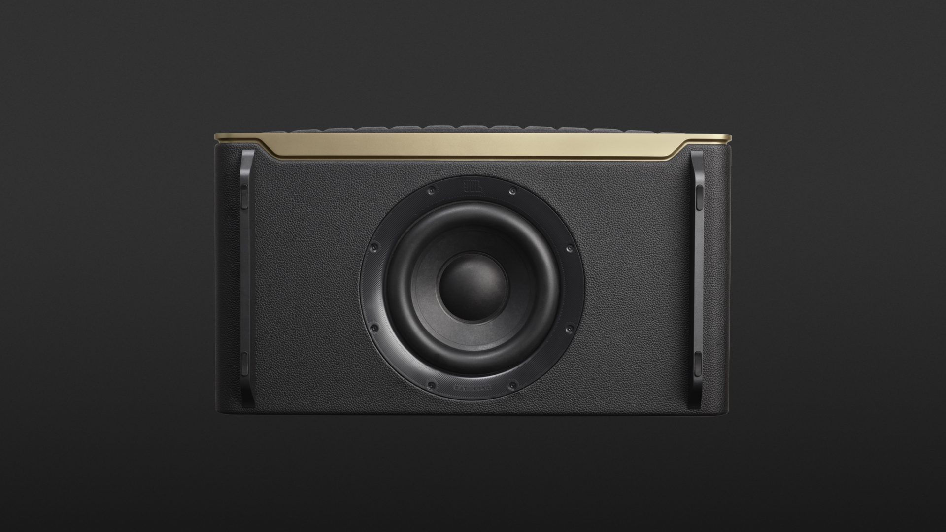 Optisch setzt der JBL Authentics 500 auf ein Retro-Design, das an JBL-Modelle der 1970er-Jahre erinnert. Das Gehäuse wirkt hochwertig verarbeitet und ist einmal rundum mit einem lederartigen Stoff bespannt. Wobei nach vorne ein Aluminiumrahmen und die waffelartige Quadrex-Gitterverkleidung den markanten Look der Serie definieren und dieses warme, gestrige Gefühl erzeugen. Vor den Blicken verborgen befinden sich dahinter drei 1-Zoll-Hochtöner und drei 2,75-Zoll-Tiefmitteltöner. Unterseitig tritt ein 6,5-Zoll-Subwoofer aus dem Gehäuse, das auf zwei Kufen ruht.
