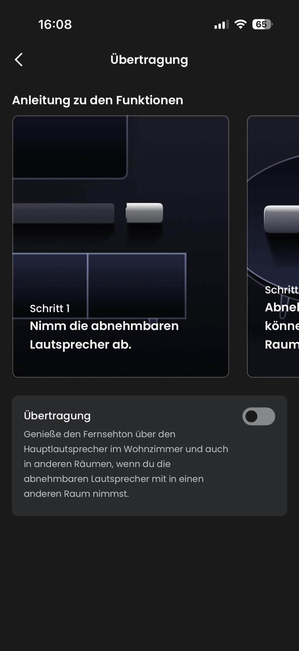 Besonders praktisch ist die Flexibilität der Rear-Lautsprecher. Für den Filmabend werden sie hinter der Sitzposition aufgestellt, im normalen TV-Alltag oder bei Platzmangel lassen sie sich schnell wieder an der Soundbar andocken oder sogar in einem anderen Raum nutzen. Die App-gestützte Umschaltung funktioniert dabei reibungslos und macht den Wechsel zwischen Surround- und Alltagsbetrieb erstaunlich komfortabel.