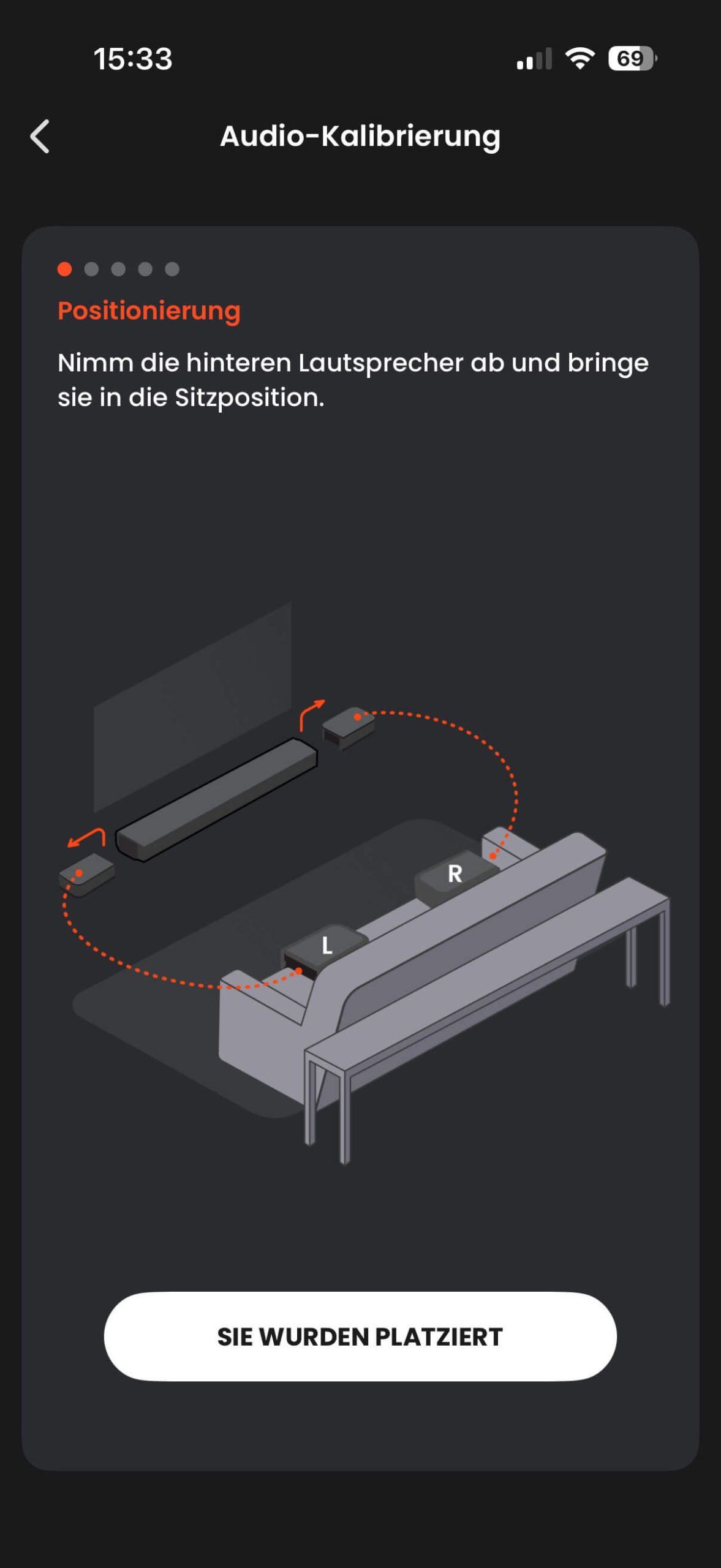 Zentrale Rolle spielt erneut die JBL One App, die bei der JBL Bar 800MK2 unverzichtbar ist. Über sie erfolgt nicht nur die Einrichtung und Firmware-Verwaltung, sondern vor allem die Einmessung der abnehmbaren Surround-Lautsprecher. Der Vorgang ist einfach gehalten: Lautsprecher im Raum positionieren, Kalibrierung starten – das System passt Laufzeiten und Pegel automatisch an. Der Unterschied ist hörbar und sorgt dafür, dass der Surround-Effekt deutlich präziser und geschlossener wirkt als ohne Einmessung.