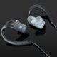 Aus meiner Sicht ist das verbindende, im Nacken liegende Kabelelement etwas zu lang geraten, wodurch es in der Bewegung mitspringen und Kabelgeräusche verursachen kann. Dieses Manko lässt sich jedoch mit Hilfe eines Gummibands oder eines kleinen Clips beheben, indem die Kabellänge auf das gewünschte Maß verkürzt wird. Ansonsten wirken Konstruktion und Verarbeitung stimmig und robust, zumal die wasserdichte Fertigung Schutz vor Regenschauern sowie Spritzwasser bietet und die Reinigung erleichtert. Da die Enden der Ohrbügel und die Gehäuse mit Magneten ausgestattet sind und aneinanderhaften, können die In-Ears bei Nichtgebrauch an der Kleidung oder einer Tasche festgeklemmt werden, was sehr praktisch ist.