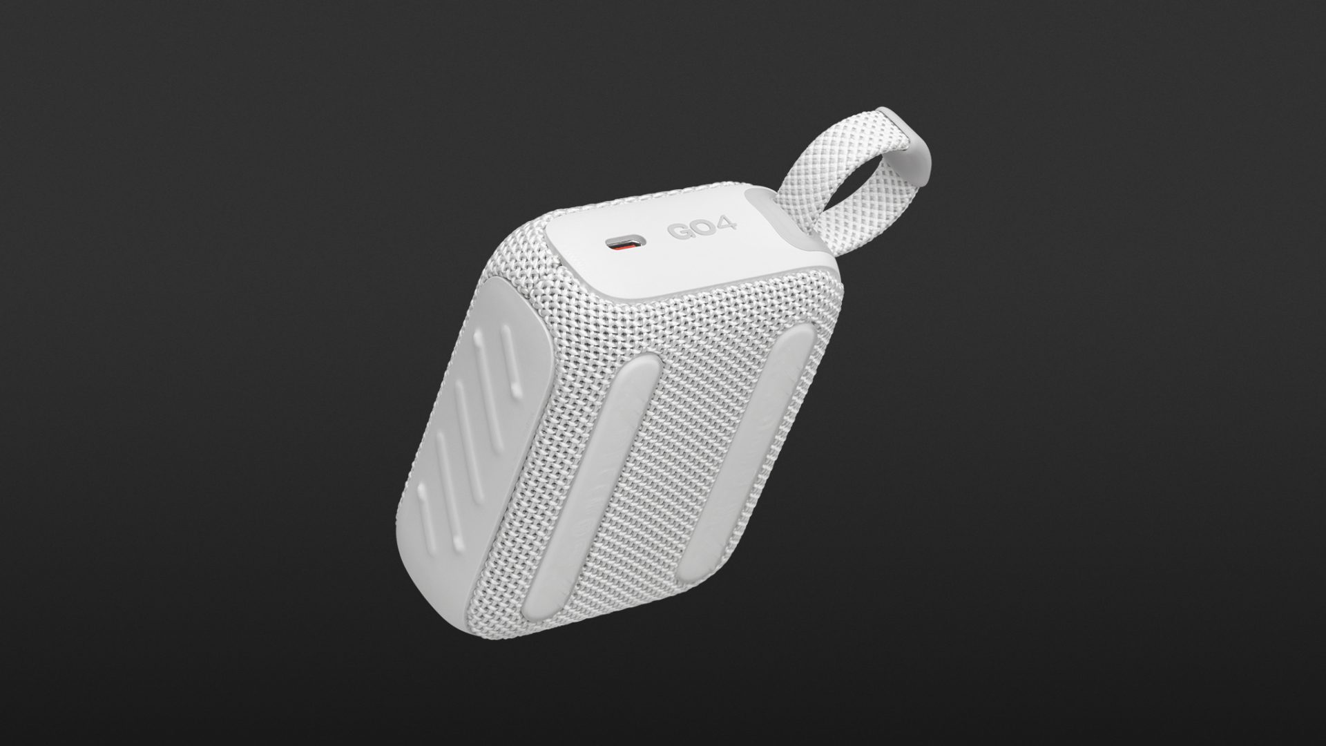 Der JBL GO 4 wiegt mit seinen 9,4 x 7,5 x 4,2 Zentimetern ganze 199 Gramm, was ihn für das Reisegepäck zum No-Brainer macht. Und selbst an der kleinen Schlaufe getragen, bemerkt man ihn kaum. Gut eingepackt ist die Box dank eines festen Akustikstoffmantels vorn und hinten. Die Seiten sind mit Plastikhauben geschützt.