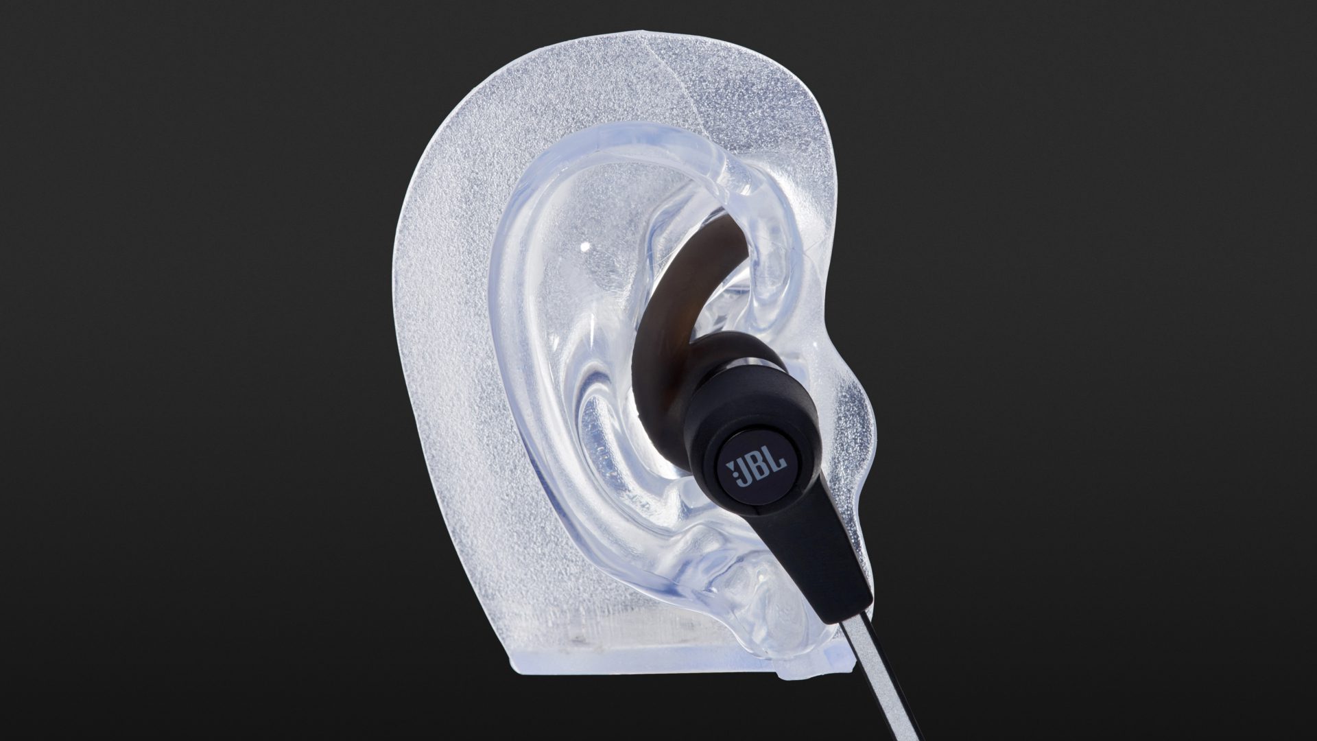 Die JBL-Kopfhörer kommen mit drei verschieden großen Ohrstöpseln. Anders als bei vielen anderen Modellen sind die Stöpsel und die Ohrbügel aus einem Stück Silikon gefertigt und nur gemeinsam zu wechseln. Ungewöhnlich war auch, dass keine der drei Ohrstöpselgrößen bei mir für richtig sicheren Halt sorgte. Das Problem ist bei mir vorher noch nie aufgetreten. Die Ohrhörer ragen senkrecht aus den Ohren, so dass man beim Blick in den Spiegel zumindest überrascht ist. Mir gefällt dieser Look nicht.