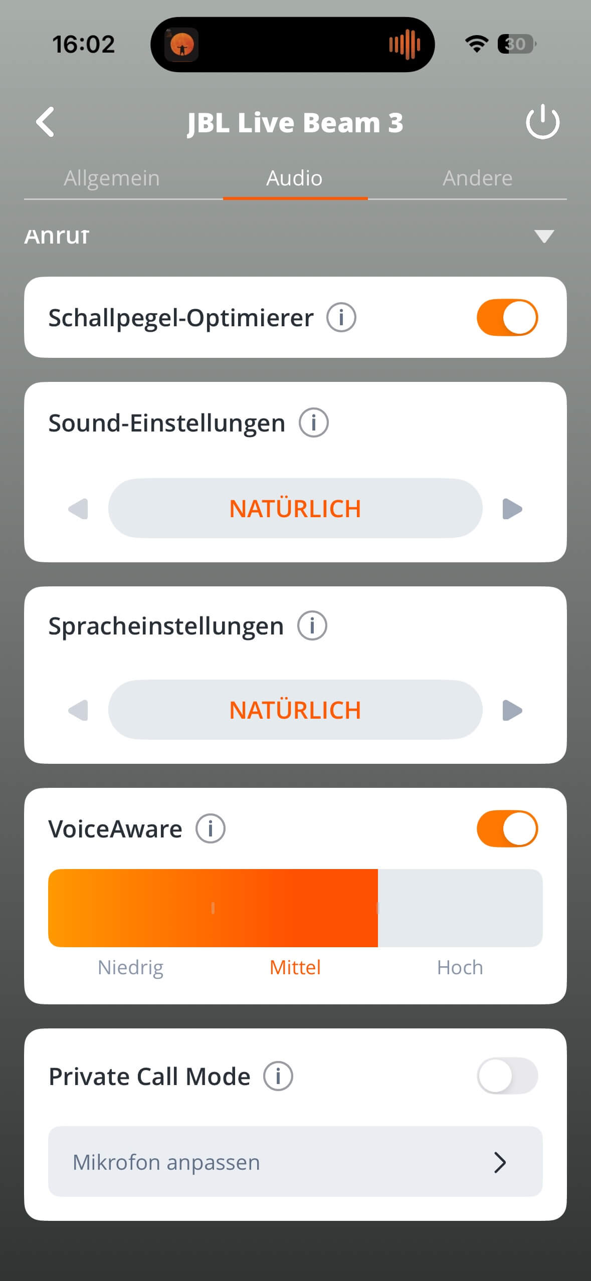 Allein vier Einstellmöglichkeiten nur für die Verbesserung von Telefonaten bieten die True Wireless In-Ears an. Und alles dient dazu, die eigene Stimme, die Stimme der Gegenstelle und die Wahrnehmung während des Telefonierens auch in ungünstiger Umgebung zu verbessern. Das gelingt JBL und mir wird gute und klare Verständlichkeit bestätigt oder andersherum: Viele haben überhaupt nicht bemerkt, dass sie über die JBL Live Beam 3 angerufen wurden.