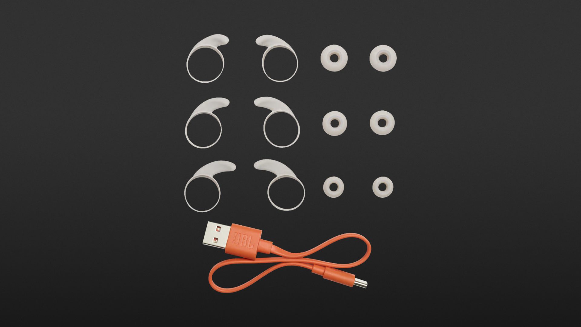 - Eartips und -Wings in jeweils drei Größen (S/M/L)