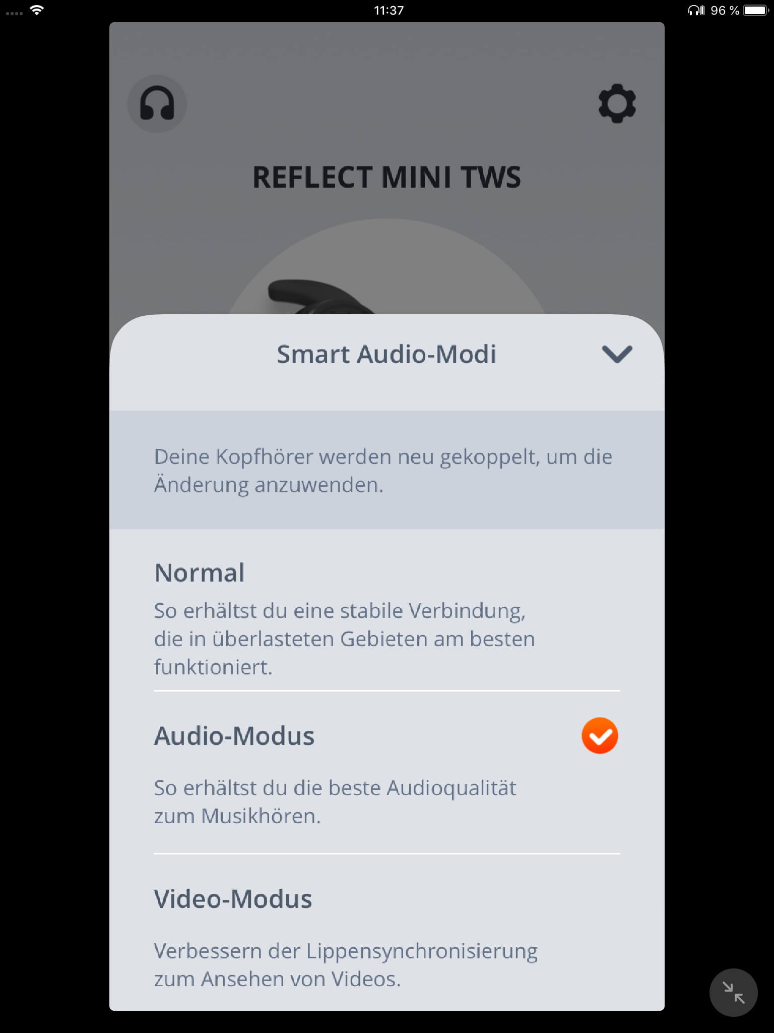 - unabhängig von der App ist nicht ersichtlich, welcher Modus aktiv ist
