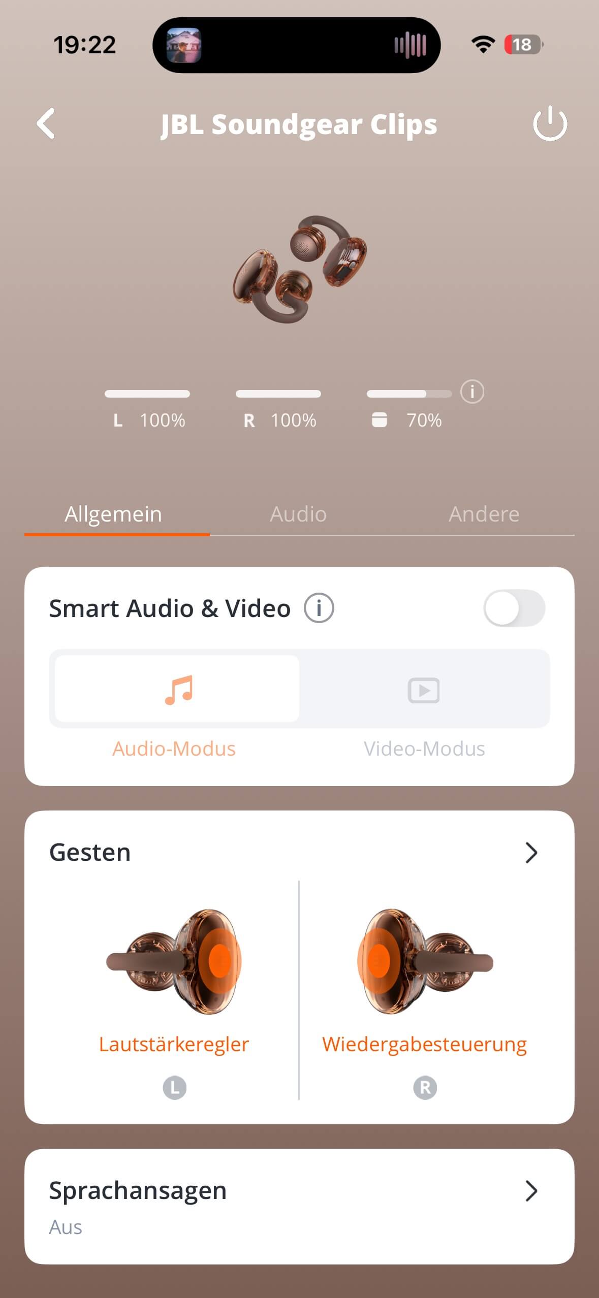 Über Bluetooth 5.4 und mit Google Fast Pair ausgestattet, gelingt die Kopplung immer schnell. In der Android-Welt eine Spur bequemer als unter iOS. Zwei Devices können zugleich gekoppelt sein, denn die JBL Soundgear Clips beherrschen Multipoint, was das zügige Umschalten von Film am Laptop zu eingehendem Telefonanruf auf dem Handy erlaubt.