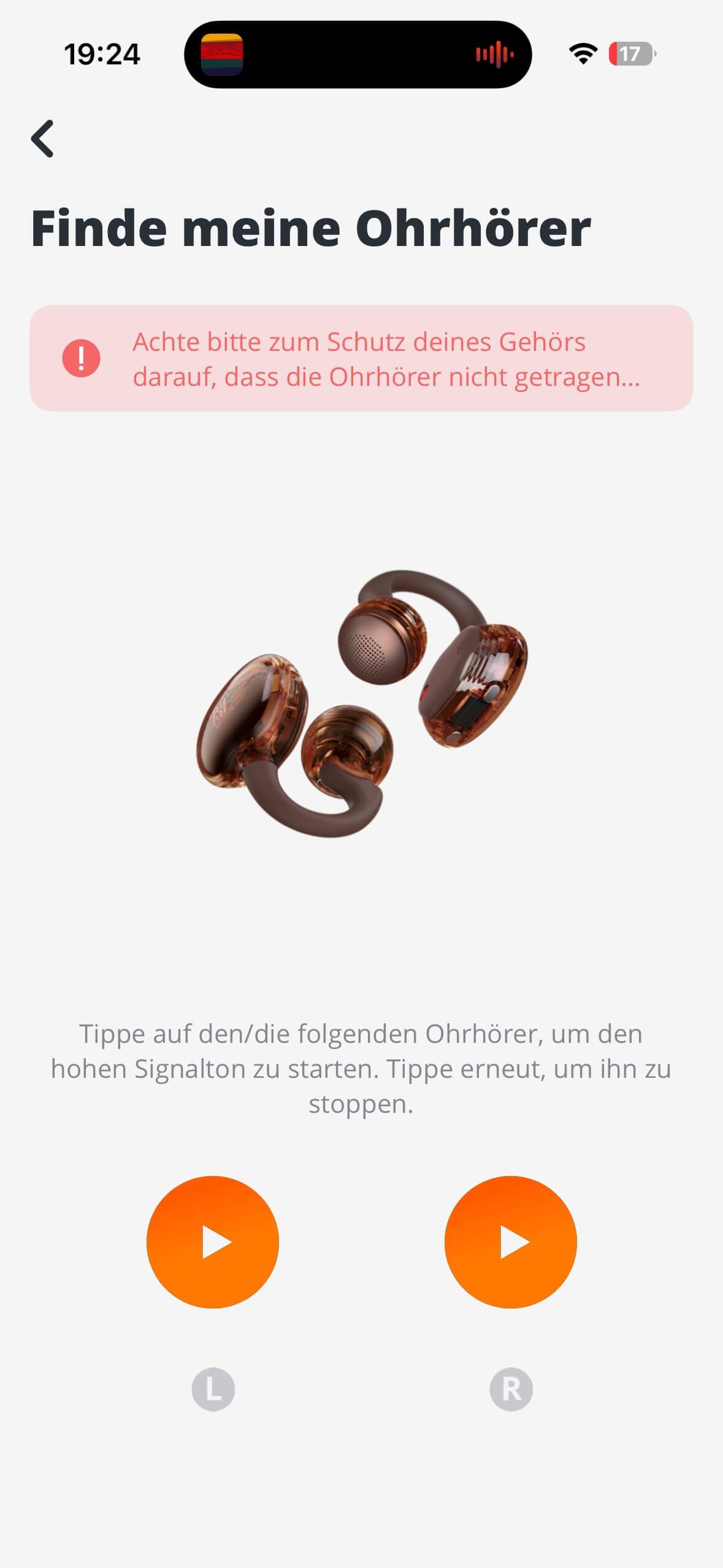 Über die an der Rückseite des Akkus angebrachten Touchflächen lassen sich die JBL Soundgear Clips gut steuern, wenn man vornehmlich den Daumen benutzt. Die hohe Berührungsempfindlichkeit verursacht allerdings schnell Fehleingaben, weil schon ein einfaches Nachjustieren des Sitzes eine Aktion auslöst. In der JBL Headphones App lassen sich die Touchfunktionen personalisieren – allerdings werden die Funktionen immer nur blockweise zugeordnet (alle Lautstärke-Funktionen links, alle Transport-Funktionen rechts). Um ungewollte Auslösungen zu vermeiden, wäre es besser, das einmalige Tippen zu deaktivieren und nicht gleich den ganzen Funktionsblock.
