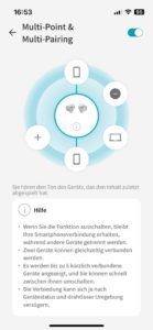 Dank Multipoint (zwei Geräte gleichzeitig) und Multi-Pairing (Kopplung mit bis zu fünf Devices) bleiben im Alltag keine Wünsche offen. Eine dazugehörige App (siehe unten) lässt euch diese Verbindungen bequem verwalten.