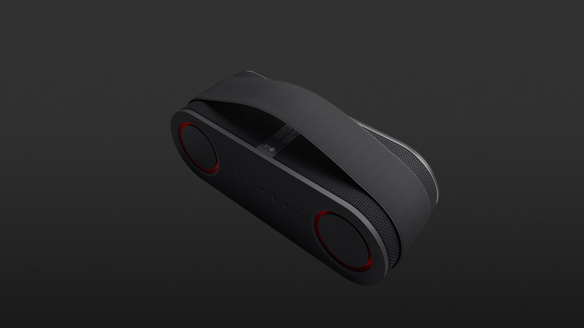 Der LG xboom Bounce by will.i.am mit seinen nach oben gerichteten Passivradiatoren und Lichteffekten an der Unterseite sieht stylisch aus und ist dabei äußerst robust und ausdauernd. Dank eines elastischen Tragegurts nimmt man ihn gerne mit.
