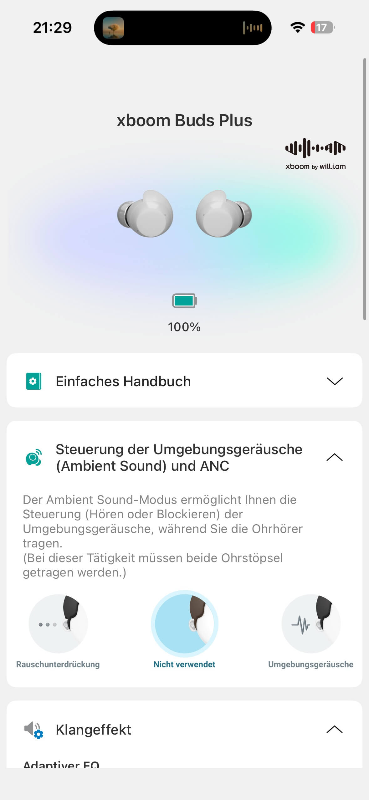 Noise Cancelling (ANC) und Transparenz