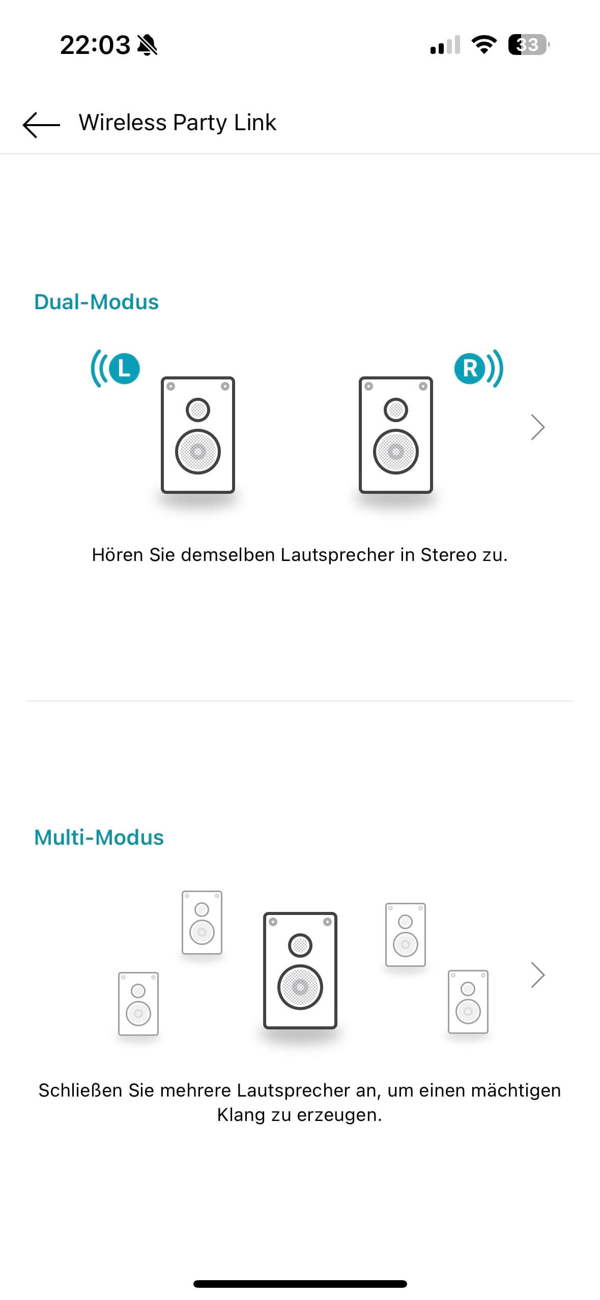 Mit Wireless Party Link lassen sich zwei LG BOOM Go im Dual Modus zu einem echten Stereopaar verkoppeln. LG bietet darüber hinaus dann noch die Möglichkeit, dieses Stereopaar mit einem Fernseher zu verbinden. Und mit dem Multi-Modus lassen sich dann viele LG BOOM GO DXG8T miteinander zu einer Soundwall verbinden. Wie viele das sein sollen, verrät LG allerdings nicht. Andere Anbieter trauen sich da bis zu 100 Boxen zu.