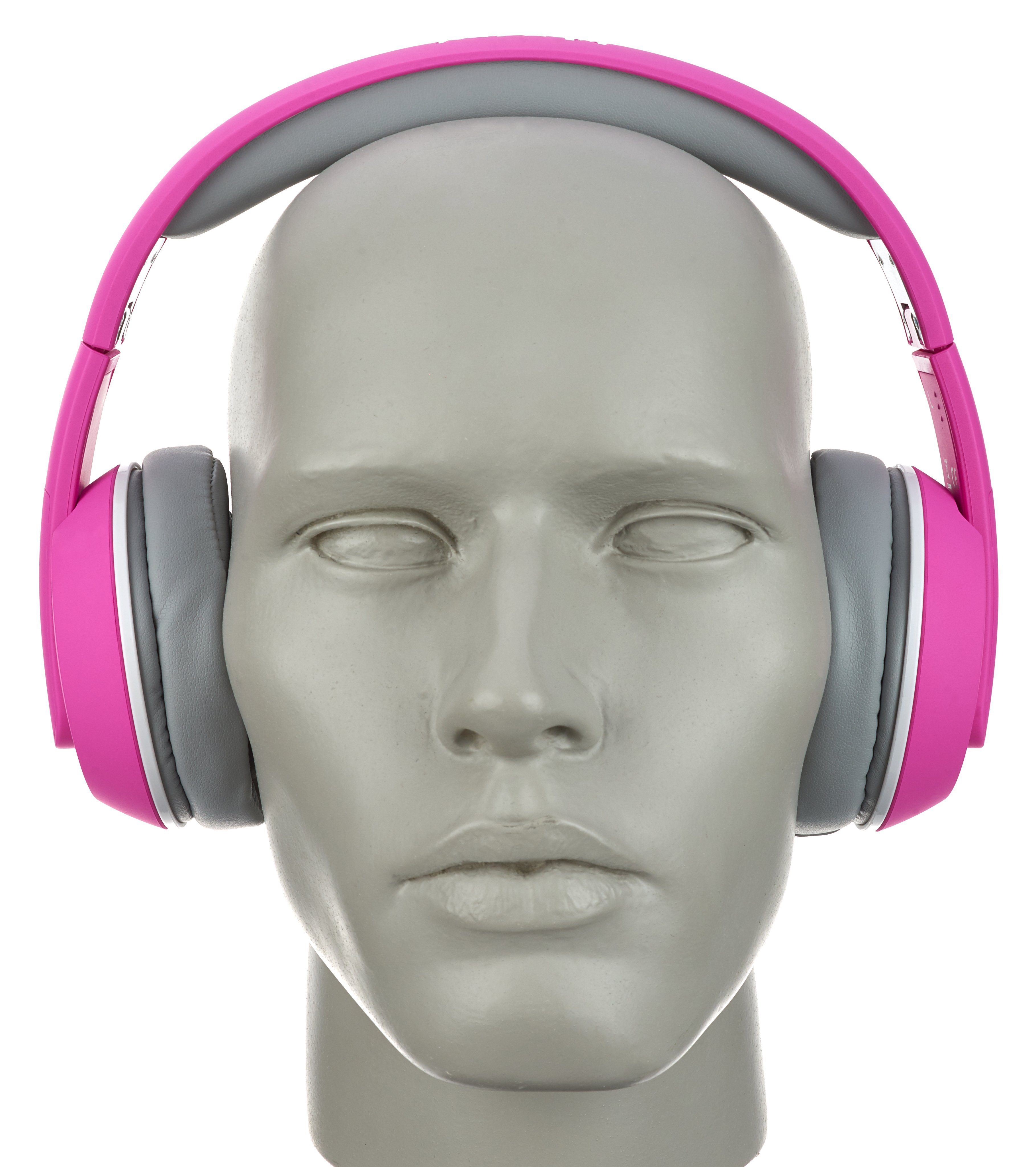 Durch den Memory-Schaum sitzt er wie angegossen auf der Ohrmuschel und selbst nach längerem Hörgenuss drückt nichts. Auch der Kopfbügel ist mit diesem Schaum ausgestattet und liegt angenehm auf. Durch atmungsaktive Eigenschaften und winzige Öffnungen in der Ohrmuschel wird es auch nicht zu heiß unterm pinken „Helm“.