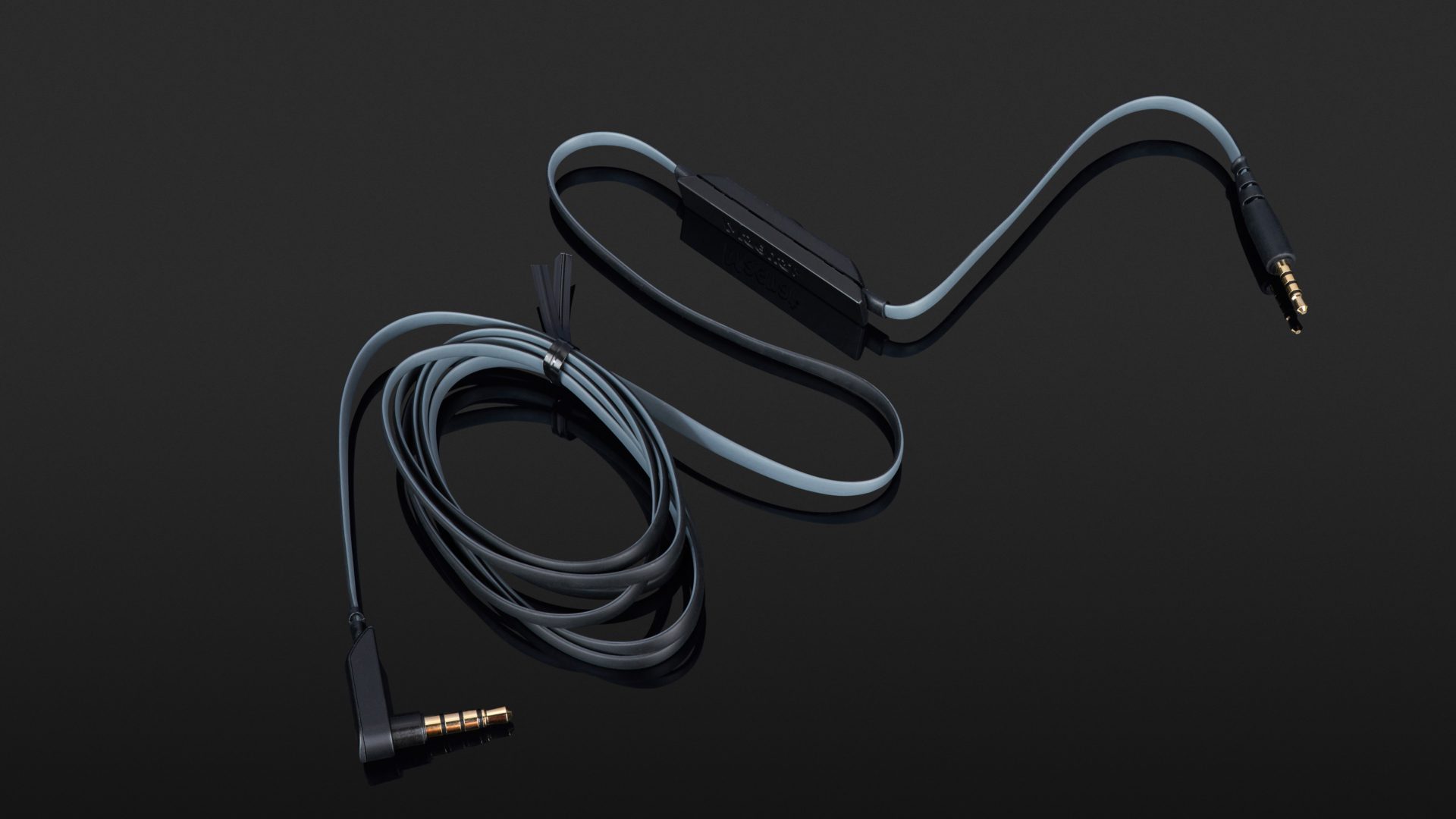 • 2 austauschbare Flachkabel, davon 1 mit 3-Knopf -Fernbedienung für Apple Produkte