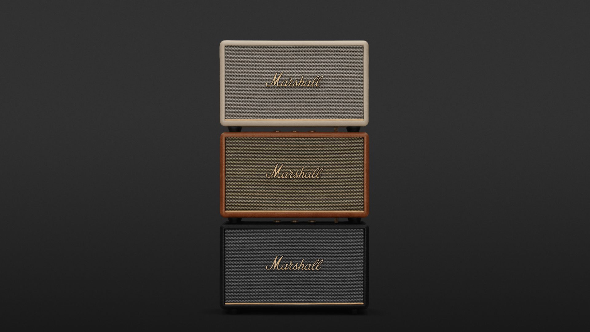 Der Marshall Acton 3 Bluetooth-Lautsprecher ist in vier Farben erhältlich: Black, Brown, Cream oder Midnight Blue. Er wird in einem plastikfreien Karton geliefert, verfügt über einen 4-Zoll-Woofer, zwei nach außen gewinkelte ¾-Zoll-Hochtöner (2 x 15 Watt) und ist mit robusten Reglern und Knöpfen ausgestattet.