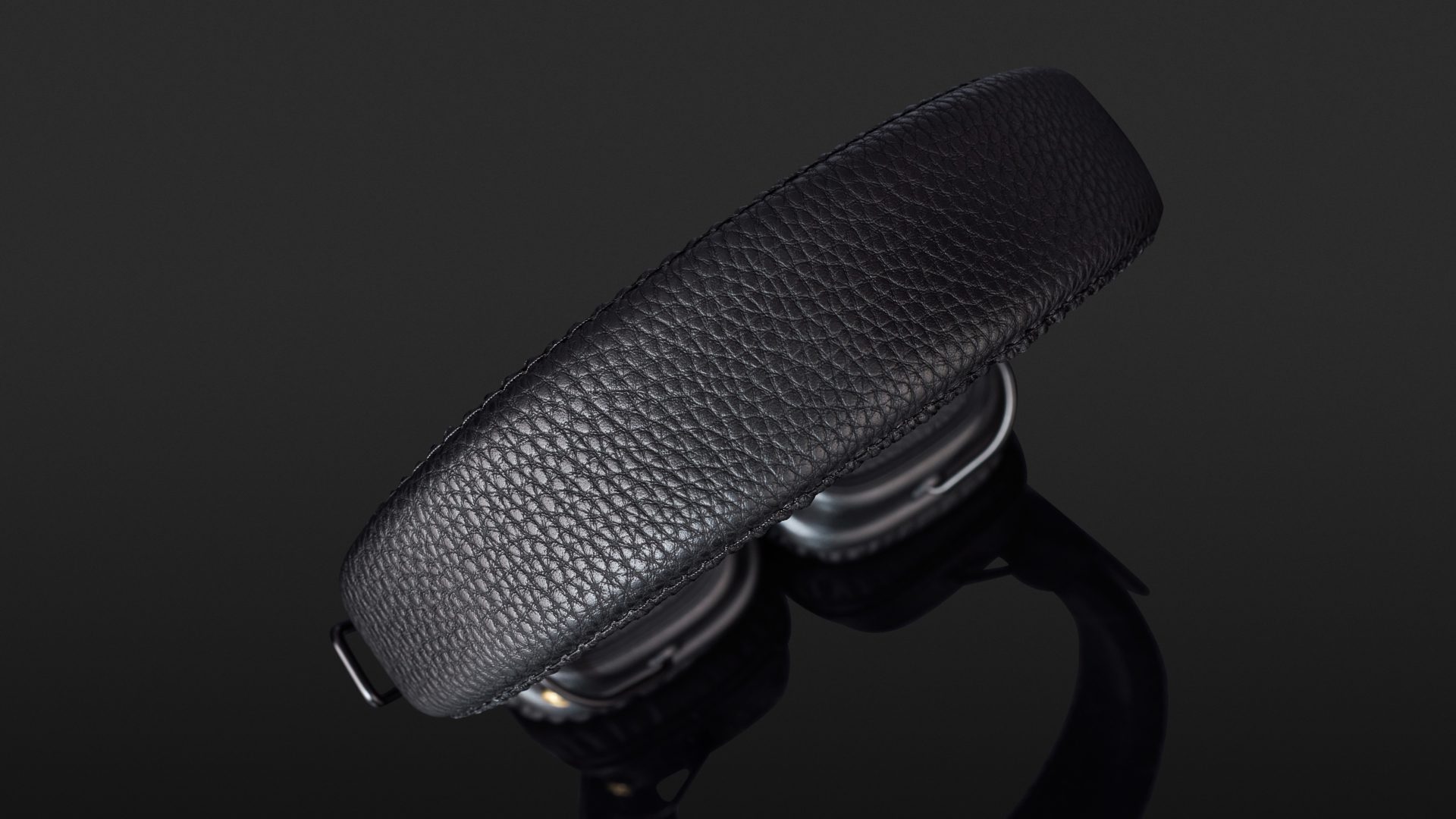 Der ganze Kopfhörer ist Marshall-mäßig durchdesignt: Der Kopfbügel zeigt die typische Tolex-Struktur der Lautsprecherboxen, natürlich prangt der berühmte weiße Schriftzug auf den Ohrmuscheln und auf der linken Seite findet sich ein kleiner Jog-Button, der in seiner goldenen Ausführung an die Drehknöpfe der Marshall Gitarren-Verstärker erinnert. Durch das stimmige Äußere fällt nicht auf, dass hier vornehmlich Plastik verbaut wurde. Der Major II macht dennoch einen stabilen Eindruck, lediglich die Plastikgelenke des Klappmechanismus machen mir langfristig gesehen Sorgen.