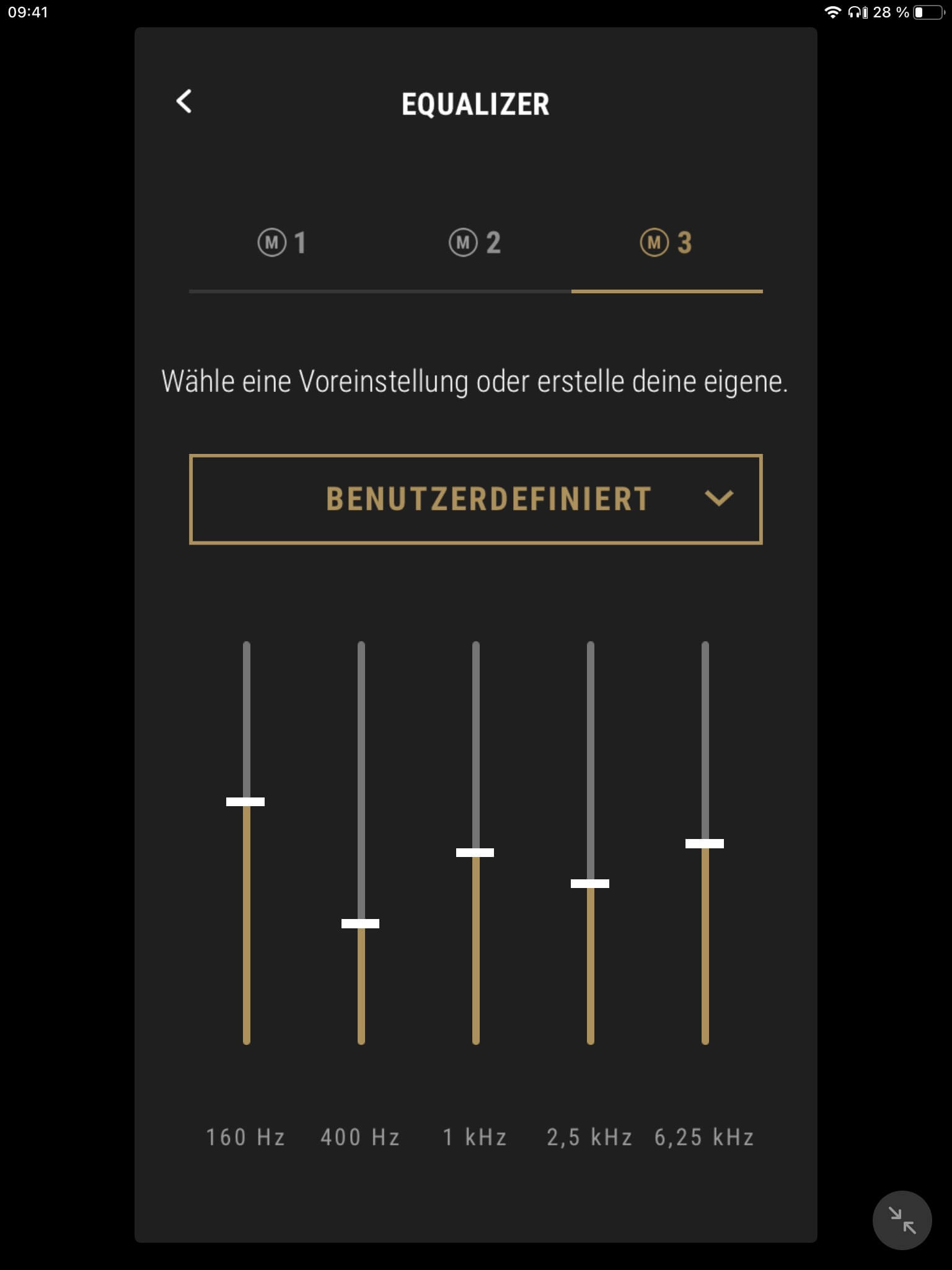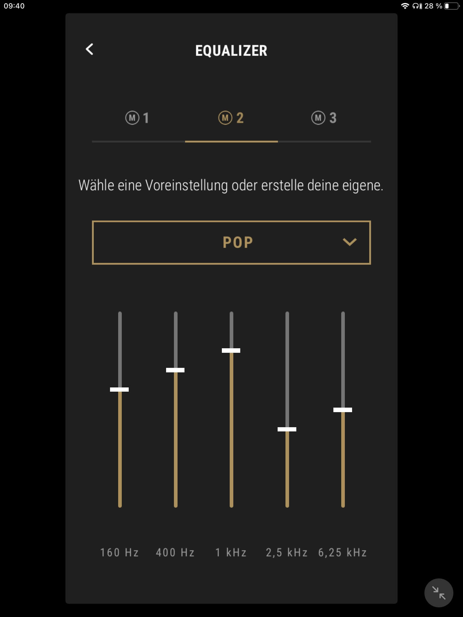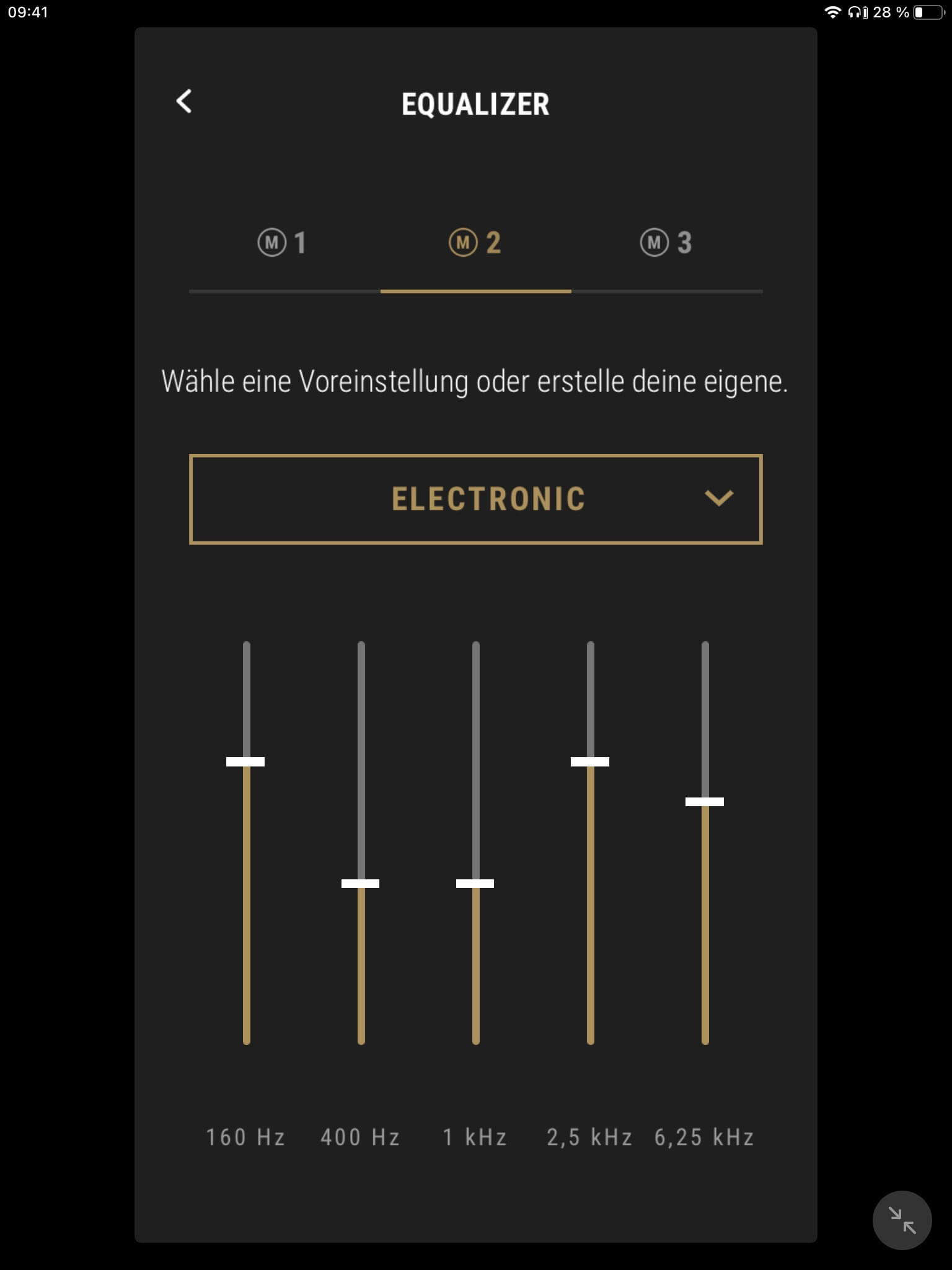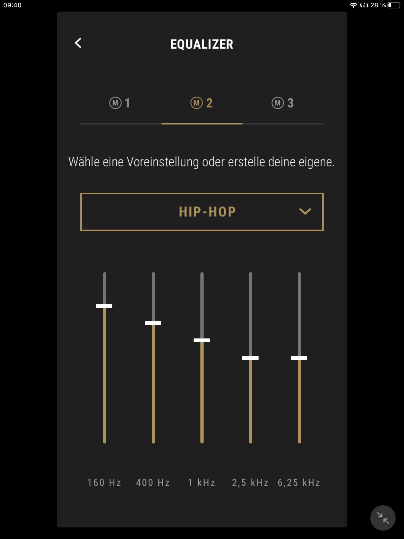 Die App-Anbindung (Android und iOS) der Marshall Mode II ist mit einem EQ zur Klangregelung ausgestattet, wobei mit „Rock“, „Sprache“, „Pop“, „Hip-Hop“, „Electronic“ und „Jazz“ neben dem Grundklang sechs vorkonfigurierte Presets zur Auswahl stehen. Ein weiterer Speicherplatz ist zudem für eigene Einstellungen vorgesehen. Darüber hinaus kann der Transparenzmodus anhand von zehn Stufen justiert und (de-)aktiviert werden. Auch Firmware-Updates lassen sich per App vornehmen, die ebenfalls über eine separate Akkustandsanzeige für beide Hörer verfügt. Diese ist jedoch wenig aussagekräftig und erscheint verbesserungswürdig, da ab einem Wert von 50 Prozent lediglich 30 Minuten Hörzeit verbleiben.