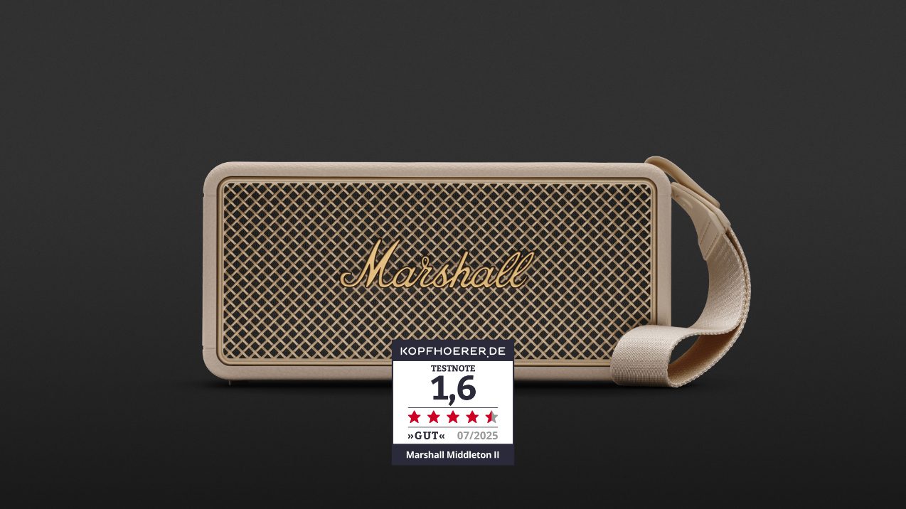 Der Marshall Tufton bleibt bei alledem klangstabil und verzerrungsfrei bis zum Maximalpegel, der mit seinen 80 Watt ordentlich hoch ist und gut einzuheizen weiß. Aber auch ganz leise sorgt die Box für ein solides und differenziertes Klangbild ohne herben Bassverlust.