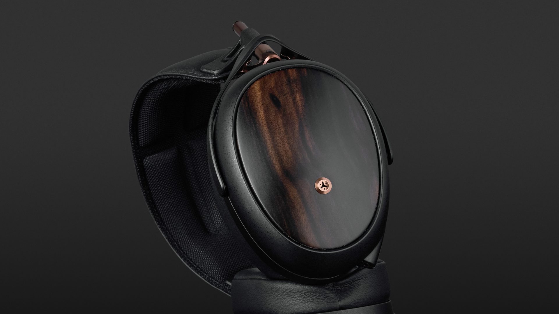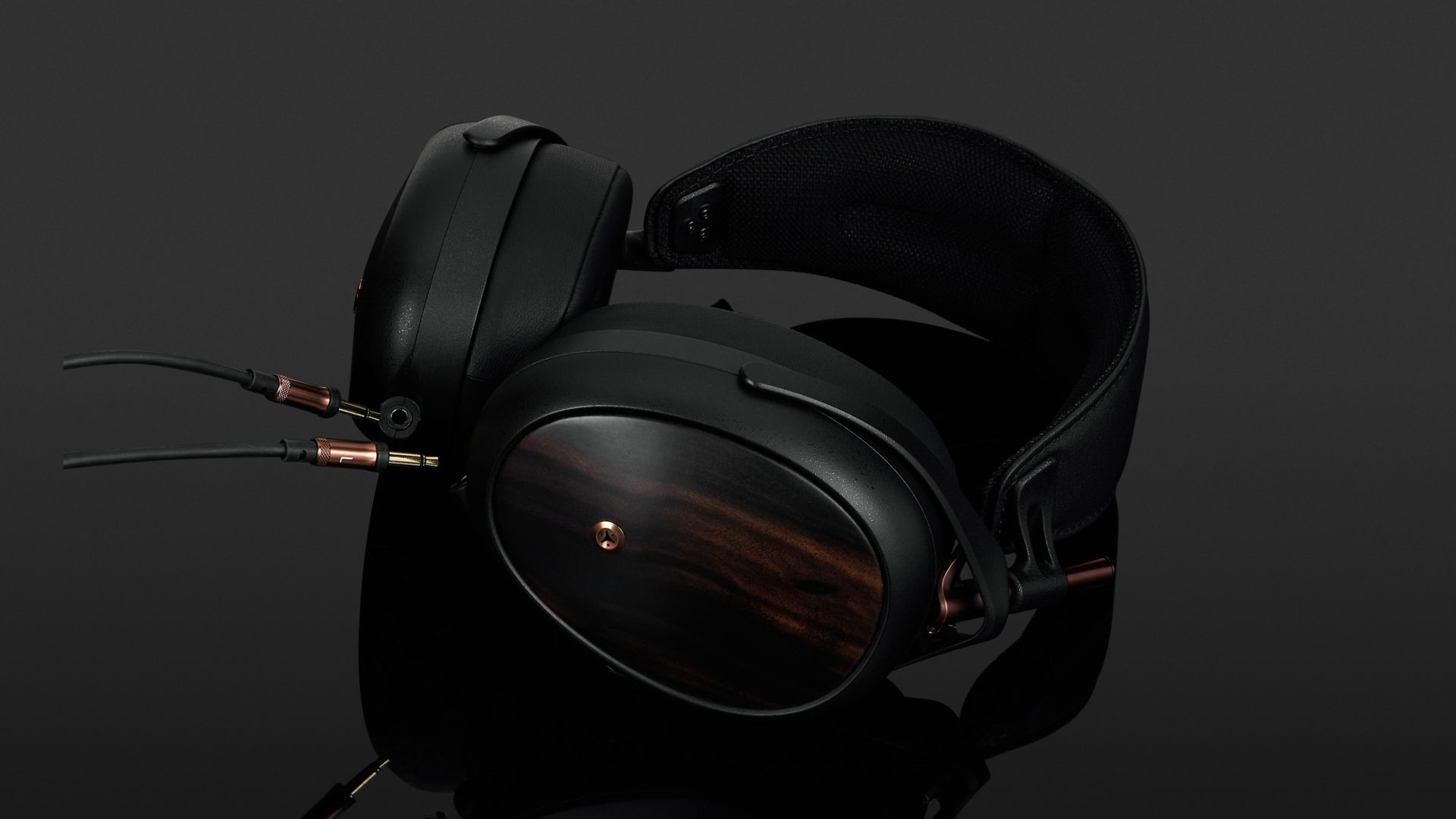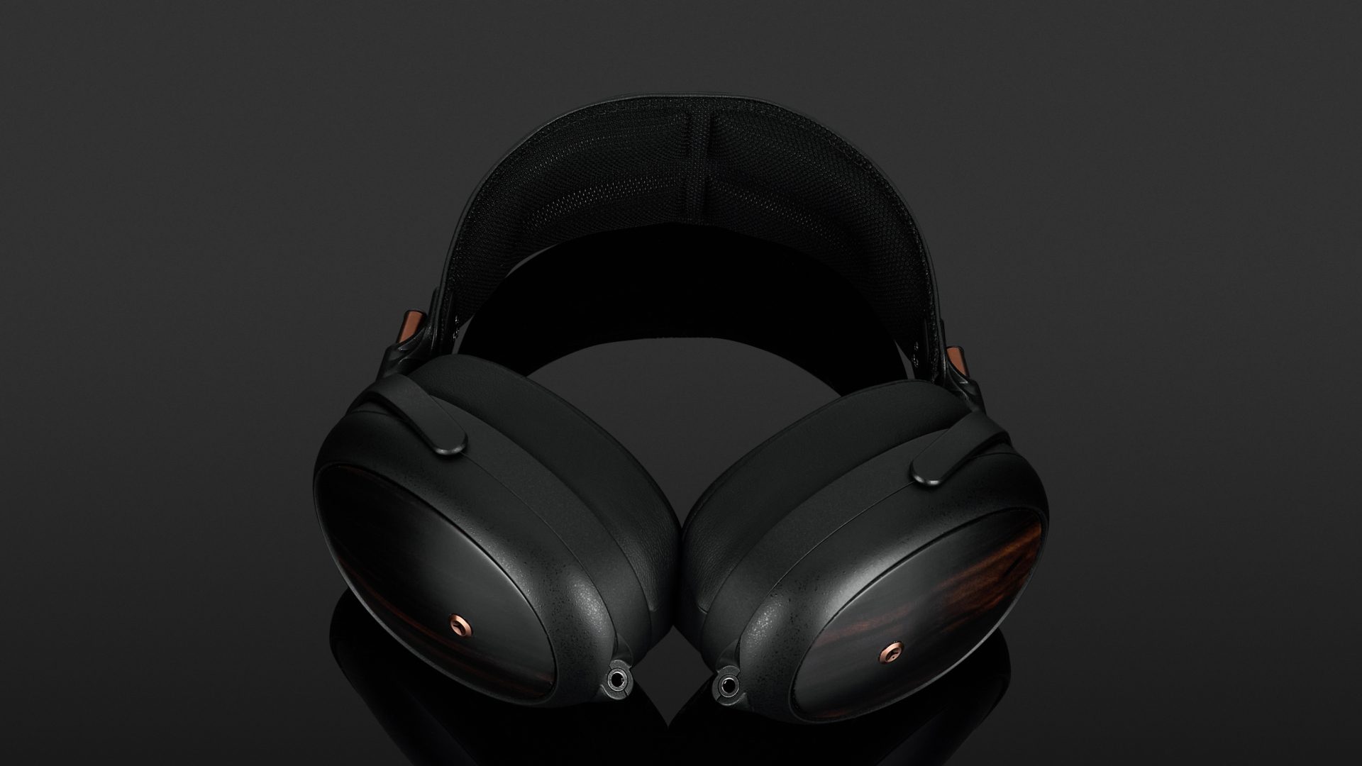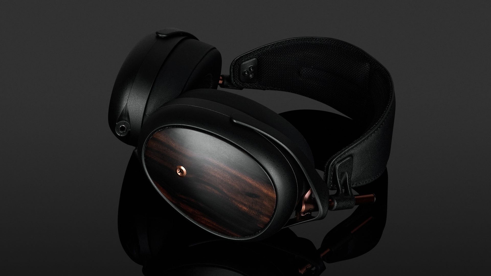 Die Gestaltung des Meze Audio Liric II ist modern und nobel zugleich. Nahezu sämtliche Bauteile des handgefertigten Kopfhörers sind in Mattschwarz ausgeführt. Nur drei Elemente bilden hier Ausnahmen. Die Mechanik der Größenverstellung und die Auslässe des Druckausgleichssystems sind kupferfarben. Die Rückseiten der glasfaserverstärkten Polymerhörschalen werden von dunklem Macassar-Ebenholz bedeckt. Robustheit und edles Design spielen hier eine gleichwertige Rolle. Nicht zuletzt betont der Hersteller, dass er die Materialauswahl des Liric auch nach Gesichtspunkten der Nachhaltigkeit trifft.