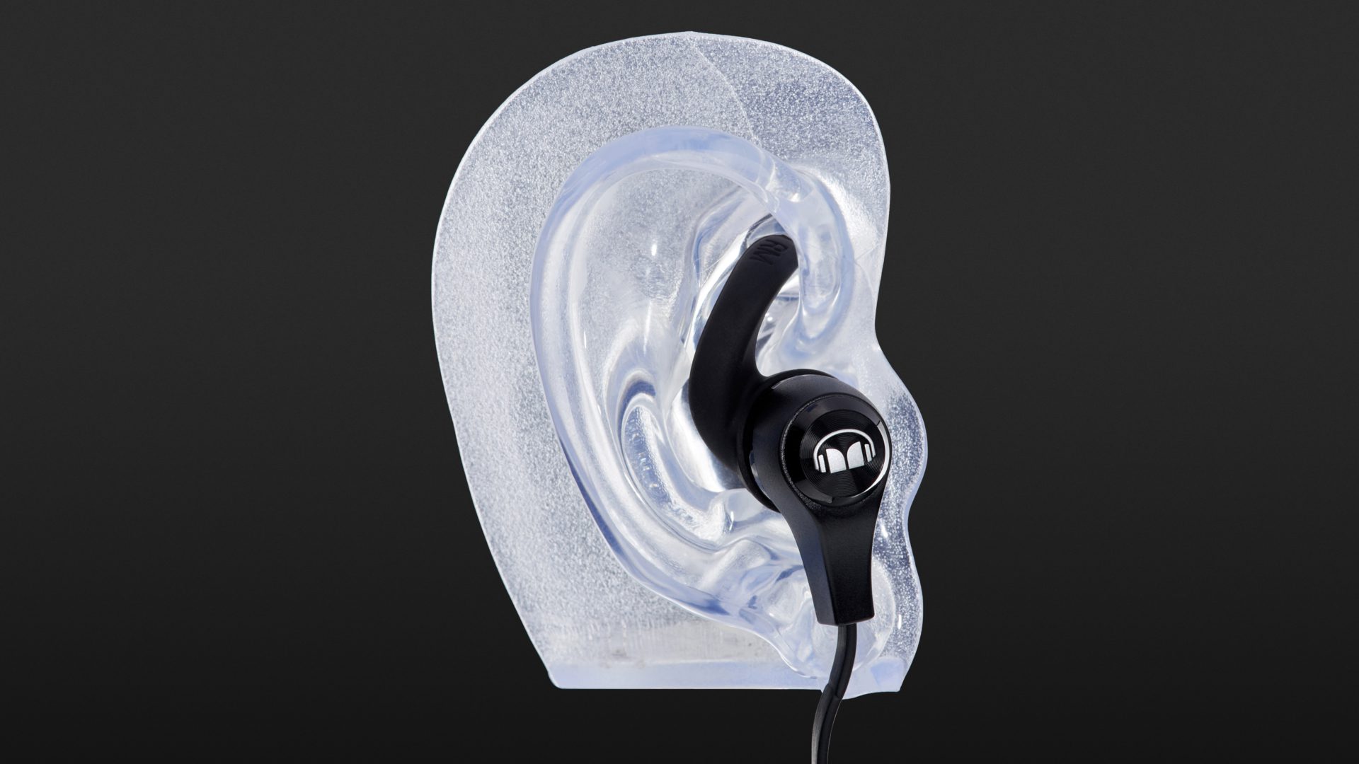 Wie üblich legt Monster diesem In-Ear-Kopfhörer drei verschieden große Ohrstöpsel bei, die je nach Gehörgangsgröße ausgewählt werden sollten. Neben den vormontierten mittelgroßen Bügeln, die für perfekten Sitz innerhalb der Ohrmuschel sorgen, werden noch ein kleineres und ein größeres Pärchen mitgeliefert. So ist für perfekten rutschfesten Sitz bei jeder Ohrgröße gesorgt. Das Design der Ohrhörer ist unauffällig, die (iOS-)Fernbedienung in Ordnung und das Verbindungskabel zwischen den beiden Ohrhörern wirkt robust. Beim Sport muss der Kopfhörer Bewegung und Schweiß verkraften können. Das sollte kein Problem sein, am anfälligsten wirkt die am Kabel montierte Fernbedienung. Sie bietet die typischen Merkmale: Laut, Leise, Start, Stopp, Skip. Dank des eingebauten Mikrofons lässt sich die Fernbedienung auch als Freisprecheinrichtung nutzen.