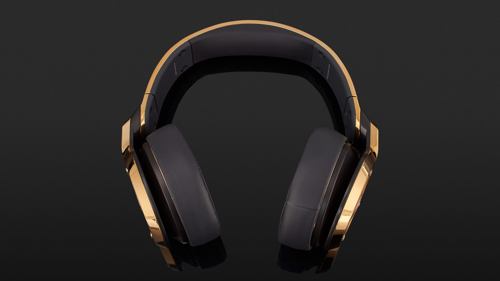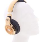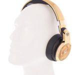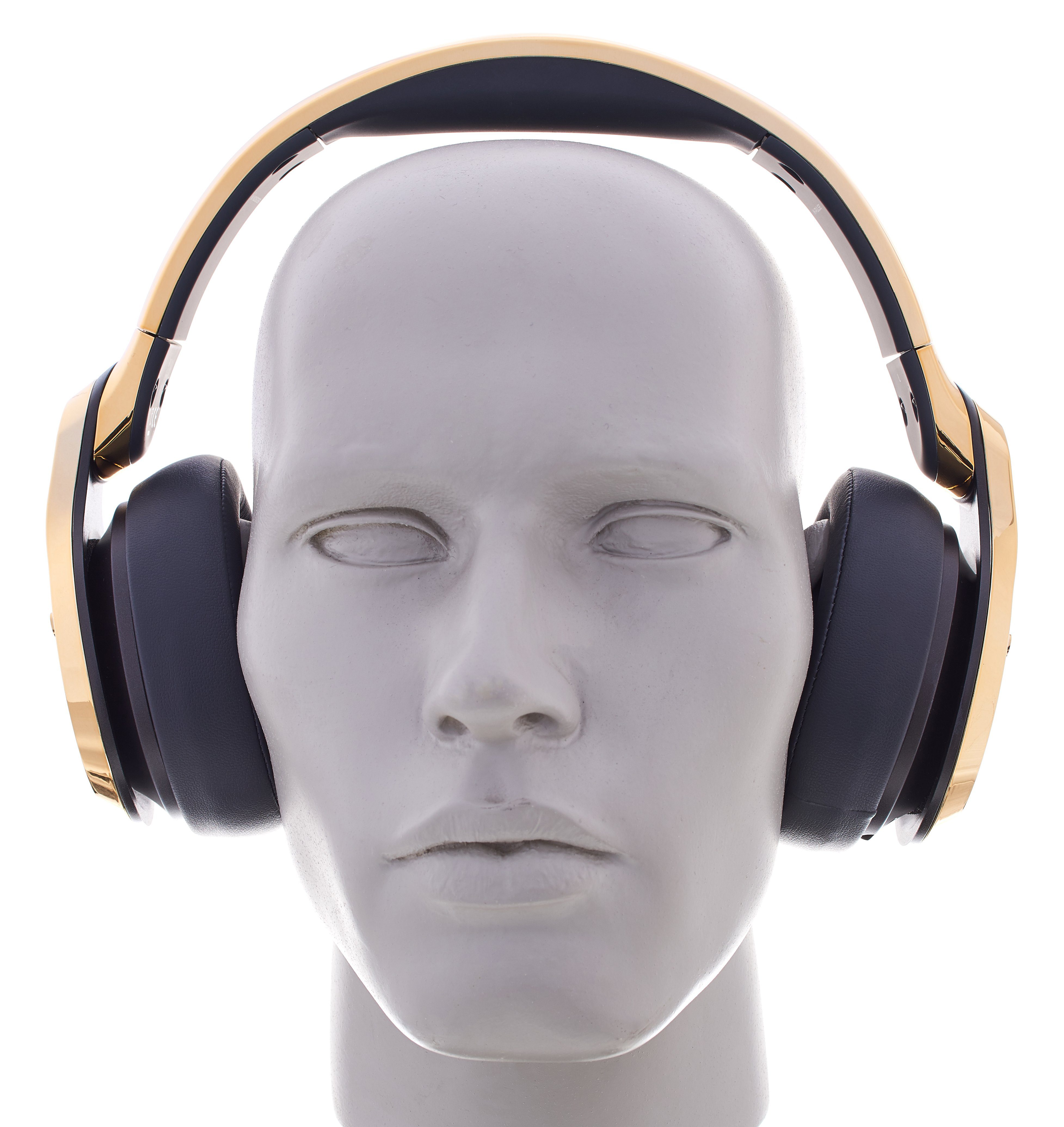 Die Ohrhörer und die Polsterung des Kopfbügels sind aus Kunstleder und machen einen soliden Eindruck. Das gilt für die in Gold lackierten Teile des Kopfhörers leider nicht: Der Kopfbügel und die Außenseiten der Ohrhörer sind aus mehr oder weniger solidem Kunststoff. Besonders die außen an den Ohrhörern aufgesetzten Platten wirken wie billiges Plastik. Dass bei diesem Teil der Farbton ein wenig von den anderen Goldelementen abweicht, kann Absicht sein.