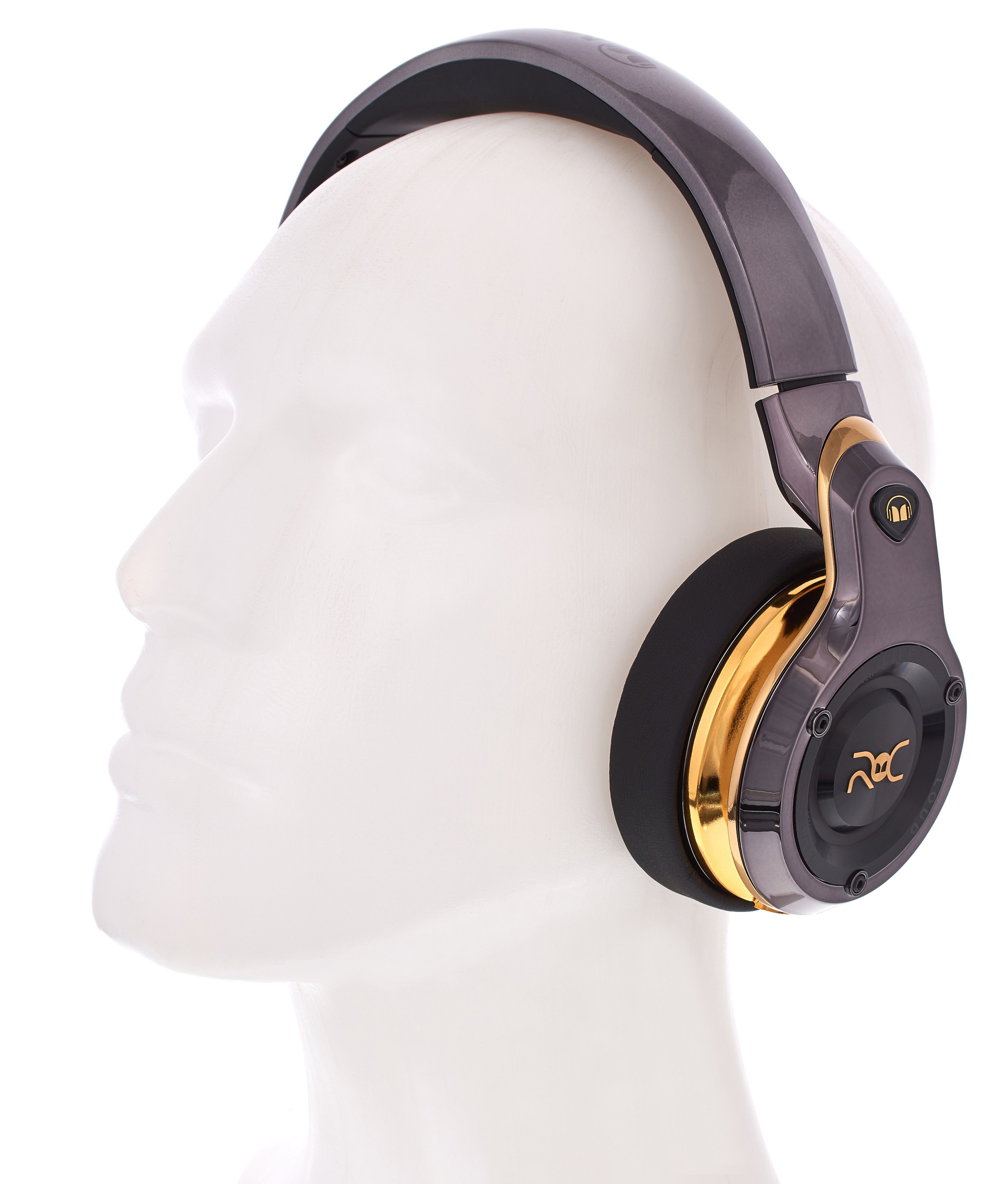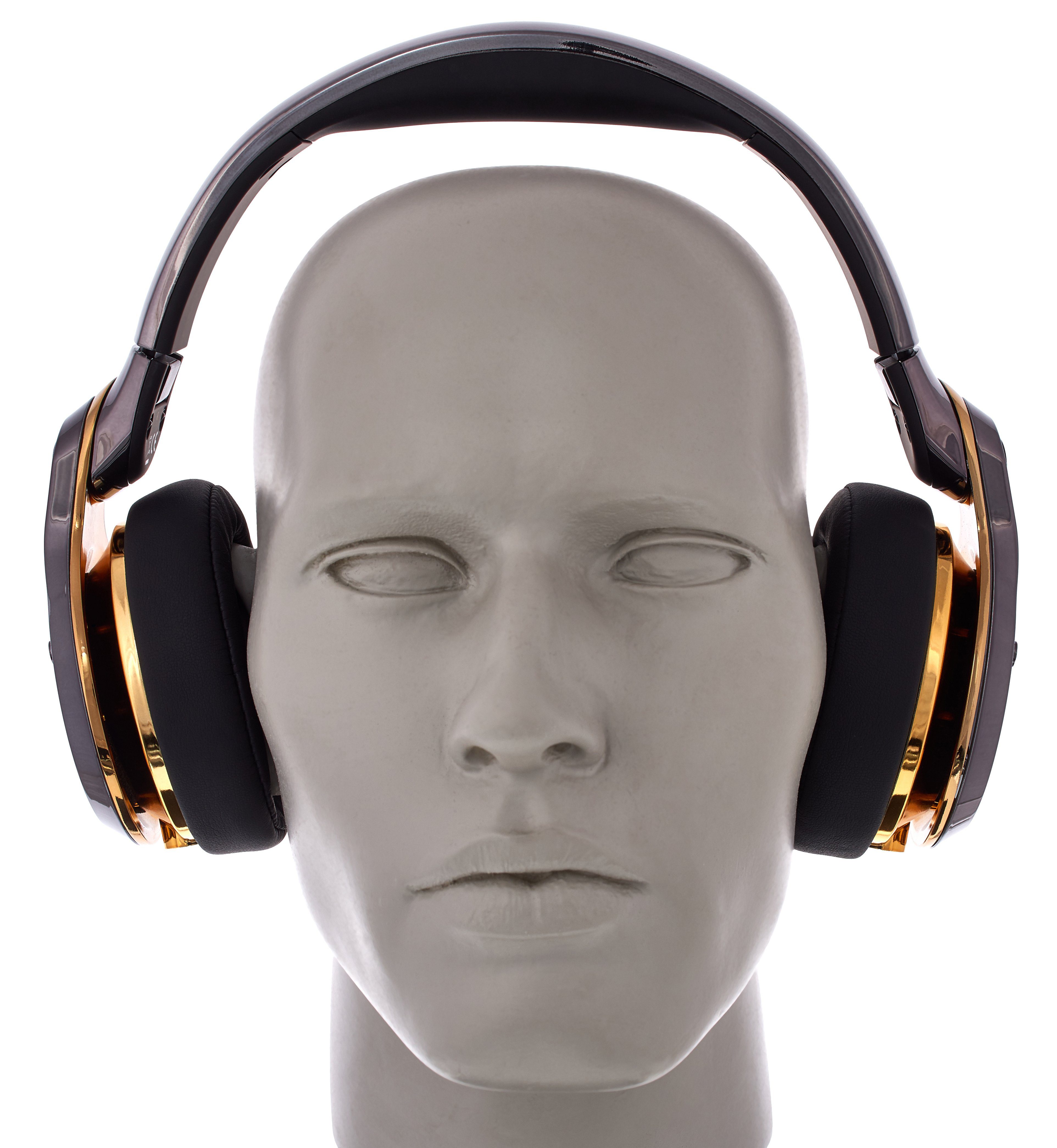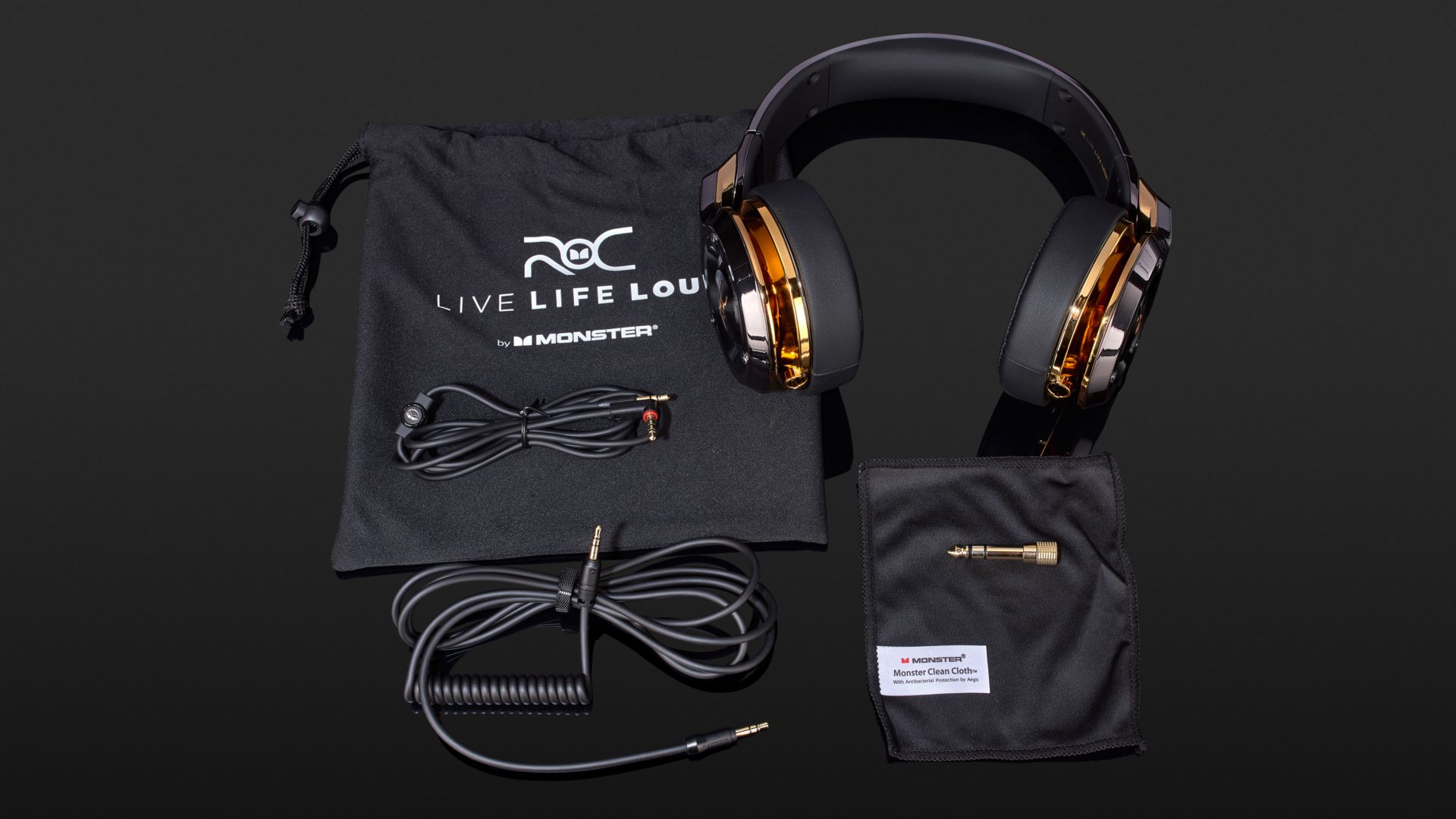 „Life Life Loud“ ist der Claim und genauso aufpoliert kommt auch der Monster-Kopfhörer mit Prunk und Pomp daher. Wer nicht mit dem Ronaldo-Style abhängen möchte, ist hier fehl am beziehungsweise auf dem Platz: goldene und verchromte Highlights und Logo-Name-Droping auf allen Kunststoff-Seitenteilen. Gut, dass Monster ein Nylon-Transportsäckchen und ein Putztüchlein mitliefert, damit man ihn auch überall liebevoll herausputzen kann.