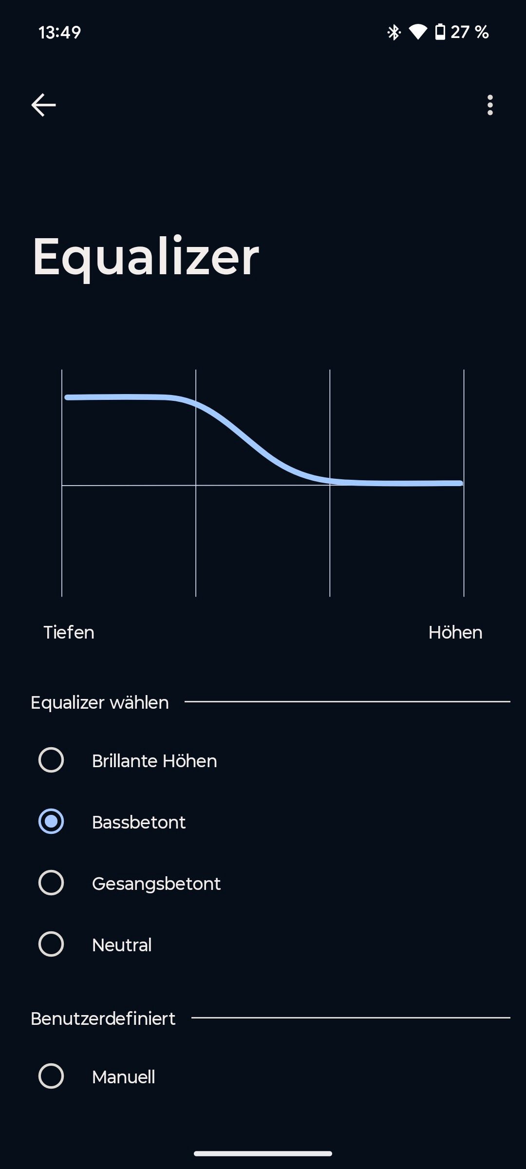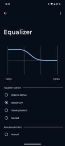 Der Equalizer kommt mit vier Presets („Brillante Höhen“, „Bassbetont“, „Gesangsbetont“, „Neutral“) sowie einem Custom EQ mit 10 Bändern. Die Bose-Pendants bieten übrigens nur einen 3-Band-EQ.