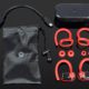 Trotzdem stellt sich hier bereits ein „billiges“ Gefühl ein, welches auch nicht wertiger wird, als ich mir aus den drei Paar Ohrpassstücken in S, M, L meine Größe auswähle und die roten Hauben auf keinen Fall aus Silikon oder Kautschuk sein können, sondern nur aus weichem und billig anmutendem Plastik geformt wurden (im englischen werden sie mit „Gel“ einigermaßen unklar benannt). Auch die Ohrbügel, die beim strammen Sport einen besseren Halt der Kopfhörer im Ohr bieten sollen, sind aus Plastik und wirken leider ebenso billig – Erinnerungen eines Ü-Ei-Bausatzes werden da spontan in mir wach.