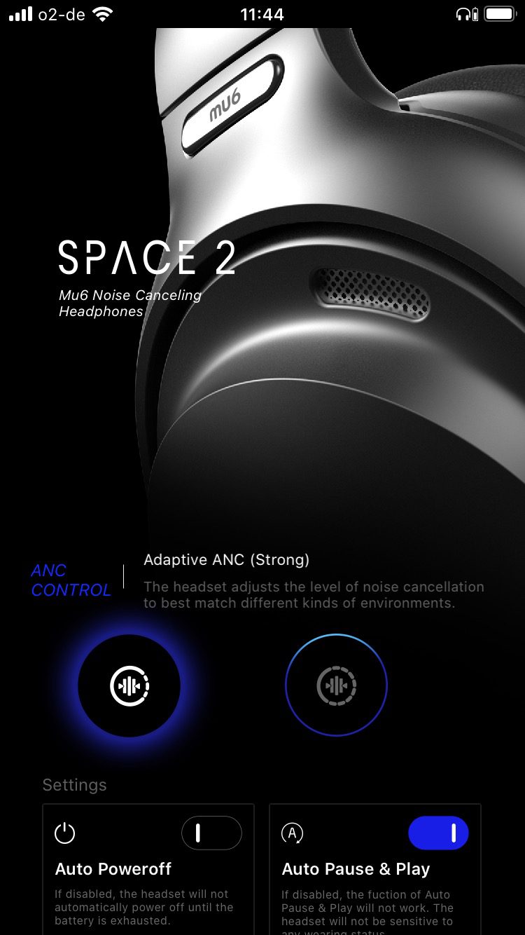 Eher enttäuschend ist die kostenlose iOS/Android App „Mu6 Connect“. Hier gibt es neben Sprach- und Reset-Funktionen die Möglichkeit, zwischen zwei Intensitätsstufen für das Noise Cancelling zu wählen und die beiden Automatikfunktionen (Autopower, Autoplay/Pause) zu konfigurieren. Firmware-Updates sind laut Handbuch möglich, waren aber nicht ersichtlich.