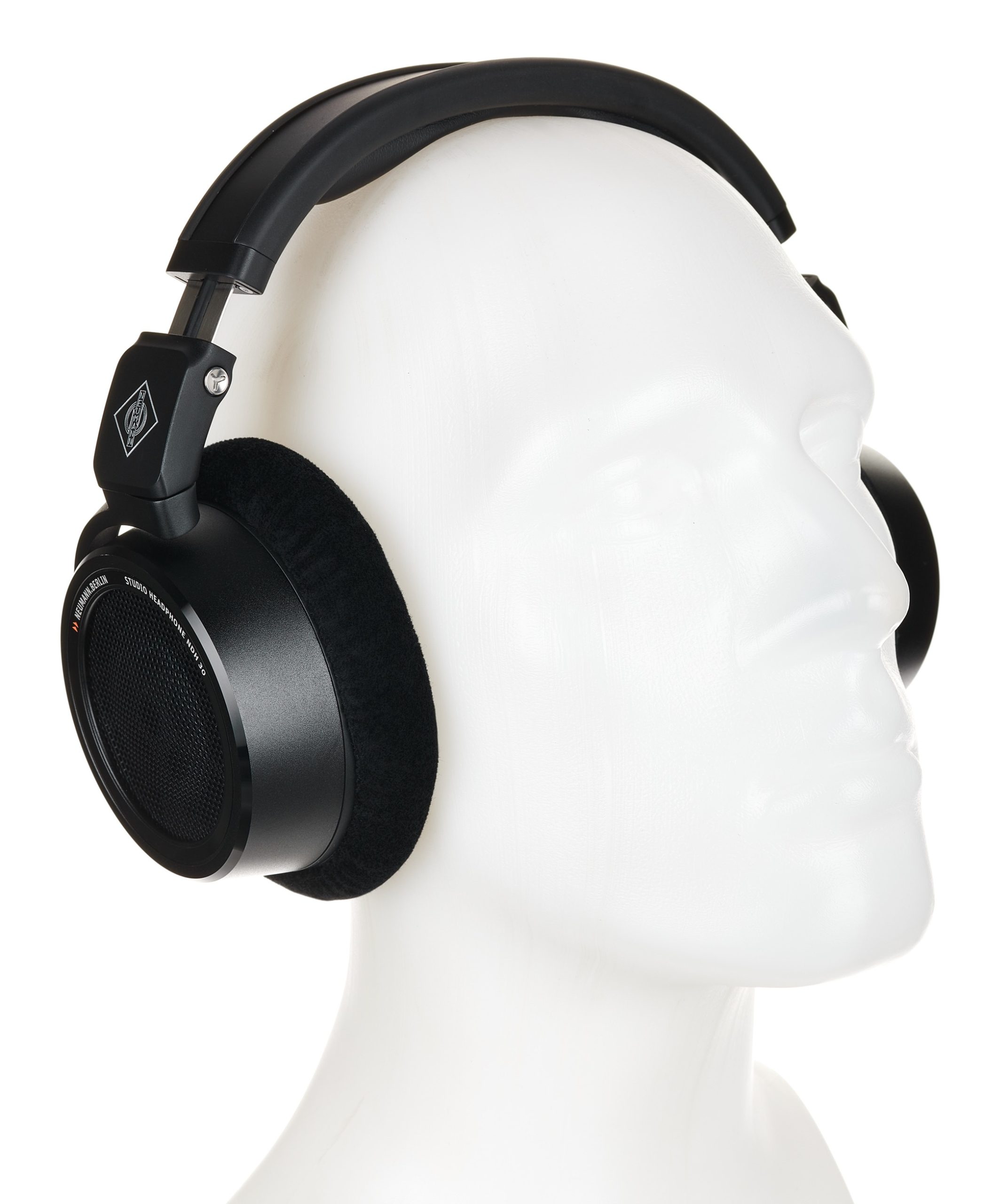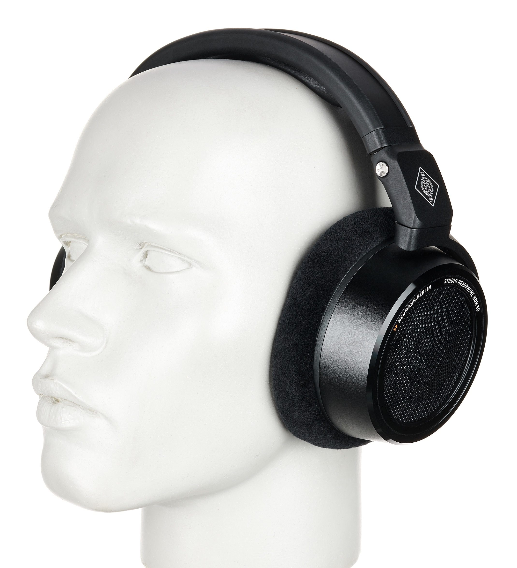 Die offene Konstruktion ermöglicht schließlich ein unbeschwertes und schnelles Schwingen der Membranen in beide Richtungen. Gleichzeitig sind diese nach außen durch ein perforiertes schwarzes Metallgitter geschützt. Eine weitere Besonderheit ist das einseitig geführte symmetrische drei Meter lange Anschlusskabel. Es endet auf einer 3,5-mm-Klinke mit Schraubadapter auf das 6,3-mm-Format. Die Symmetrie beschränkt sich allerdings allein auf das Kabel und nicht den Anschluss. So führt das Kabel das linke und rechte Signal in eigenen aber innerhalb des Kabels gebündelten Kabelsträngen, die erst in der Klinke zusammenlaufen. Laut Neumann führt diese Technik zu einer Verbesserung der Kanaltrennung. Kabel mit symmetrischen Pentaconn- oder XLR4-Anschlüssen bietet Neumann hingegen nicht an. Die entsprechenden Schnittstellen sind im professionellen Bereich auch außerordentlich selten.