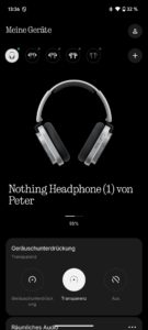 Was dem Nothing Headphone (1) ebenfalls hervorragend gelingt: Auch bei maximaler Unterdrückung bleibt der Druck auf den Ohren angenehm gering. Kein Taucherglockengefühl, kein „Knacken“ beim Wechsel.