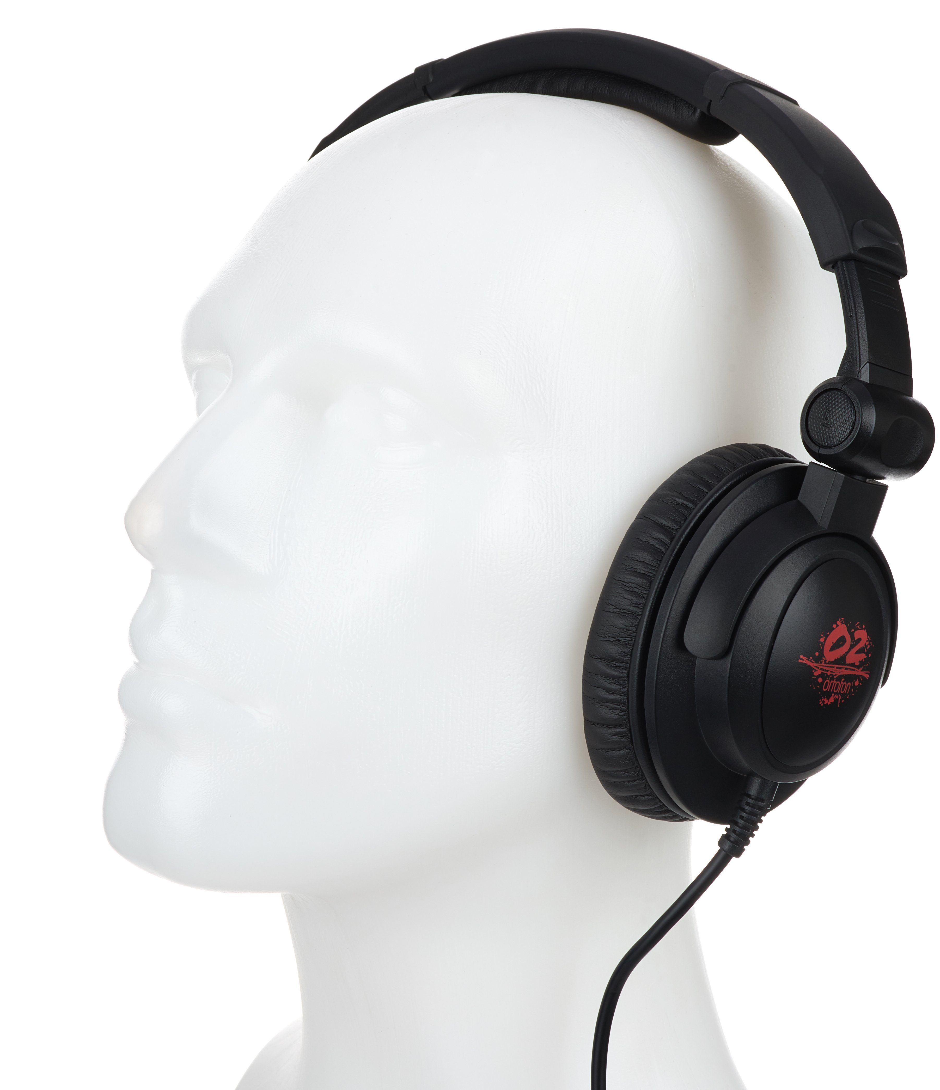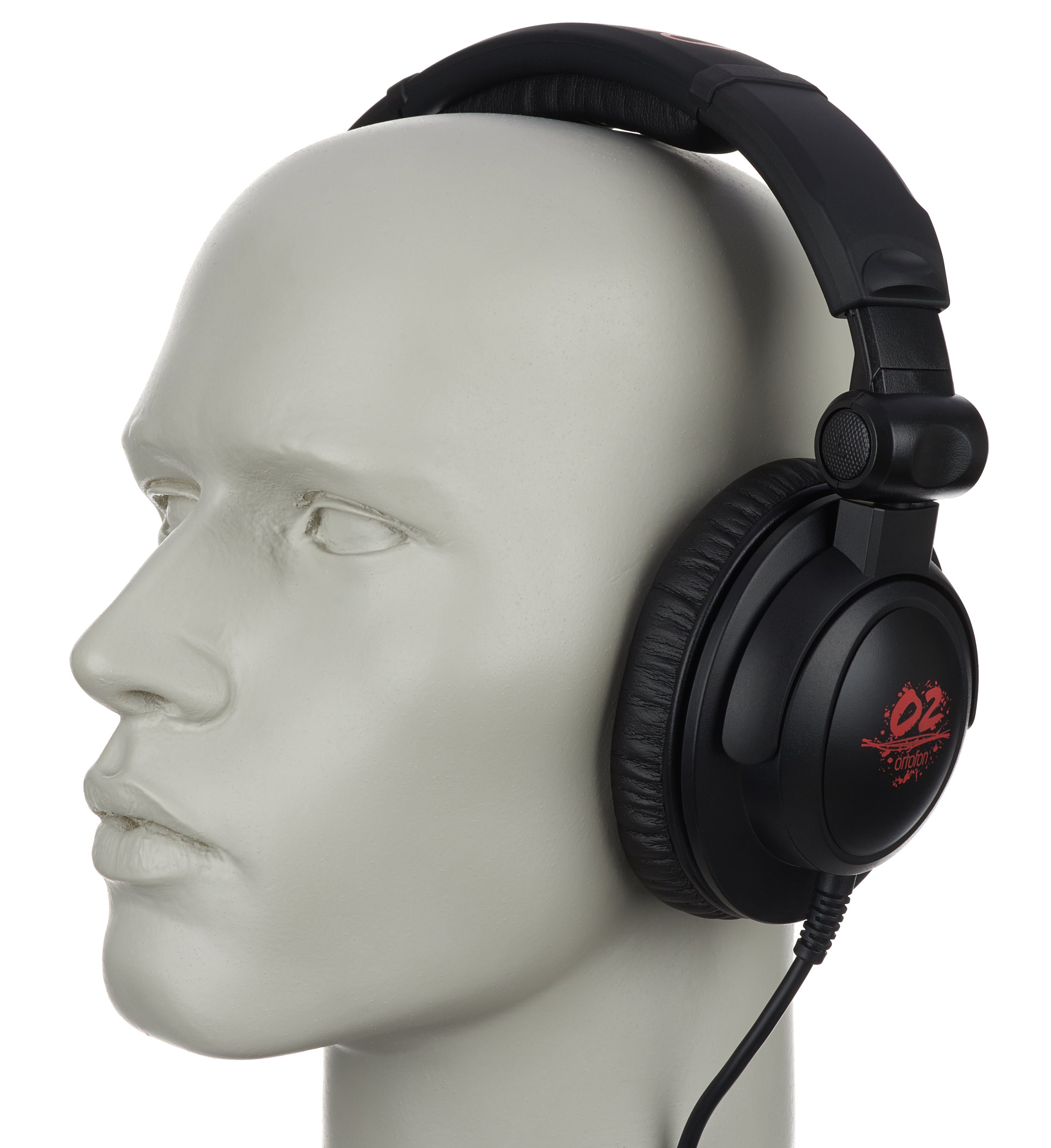 Der O2 ist ein dynamischer, ohrumschließender Kopfhörer, der mit der DJ-freundlichen Mechanik von einklapp- und wegdrehbaren (ca. 60° Grad) Ohrmuscheln aufwarten kann. Dass es sich um einen DJ-Kopfhörer handelt, der auf die kraftvolle Verstärkung durch ein externes Mischpult angewiesen ist, zeigt die niedrige Impedanz von 64 Ohm. Auch das Gewicht ist mit 346 Gramm durchaus als bullig zu bezeichnen. Das Anschlusskabel ist leider nicht austauschbar sondern fest mit dem linken Ohrhörer verbunden.