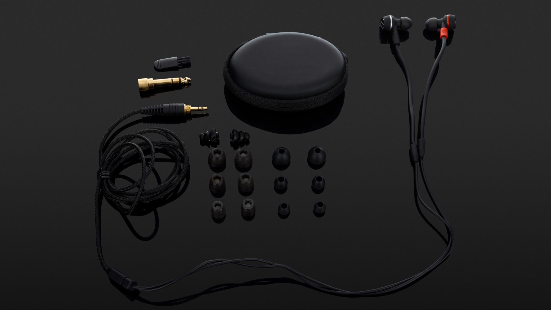 Von der Optik wirken die formschönen Ohrhörer sehr edel und robust. Letzteres gilt auch für das 1,6 Meter lange Kabel, das zum Schutz von Textil umgarnt ist. Unterhalb der beiden Treiberdüsen lässt es sich mit über eine sogenannte MMCX-Verbindung anstecken und im Verschleißfall austauschen. Für den perfekten Sitz der In-Ears im Ohr legt Pioneer Passformen aus verschiedenen Materialien und Größen bereit: die Standardform aus Silikon in vier Größen, drei Comply-Schaumstoff-Aufsätze Tx-500 in S, M, L und ein Dreierflansch-Ohrplug. Zusätzlich spendiert Pioneer ein Etui für den sicheren Transport samt kleiner Reinigungsbürste und einen Adapter auf 6,3-Millimeter-Klinkenstecker.