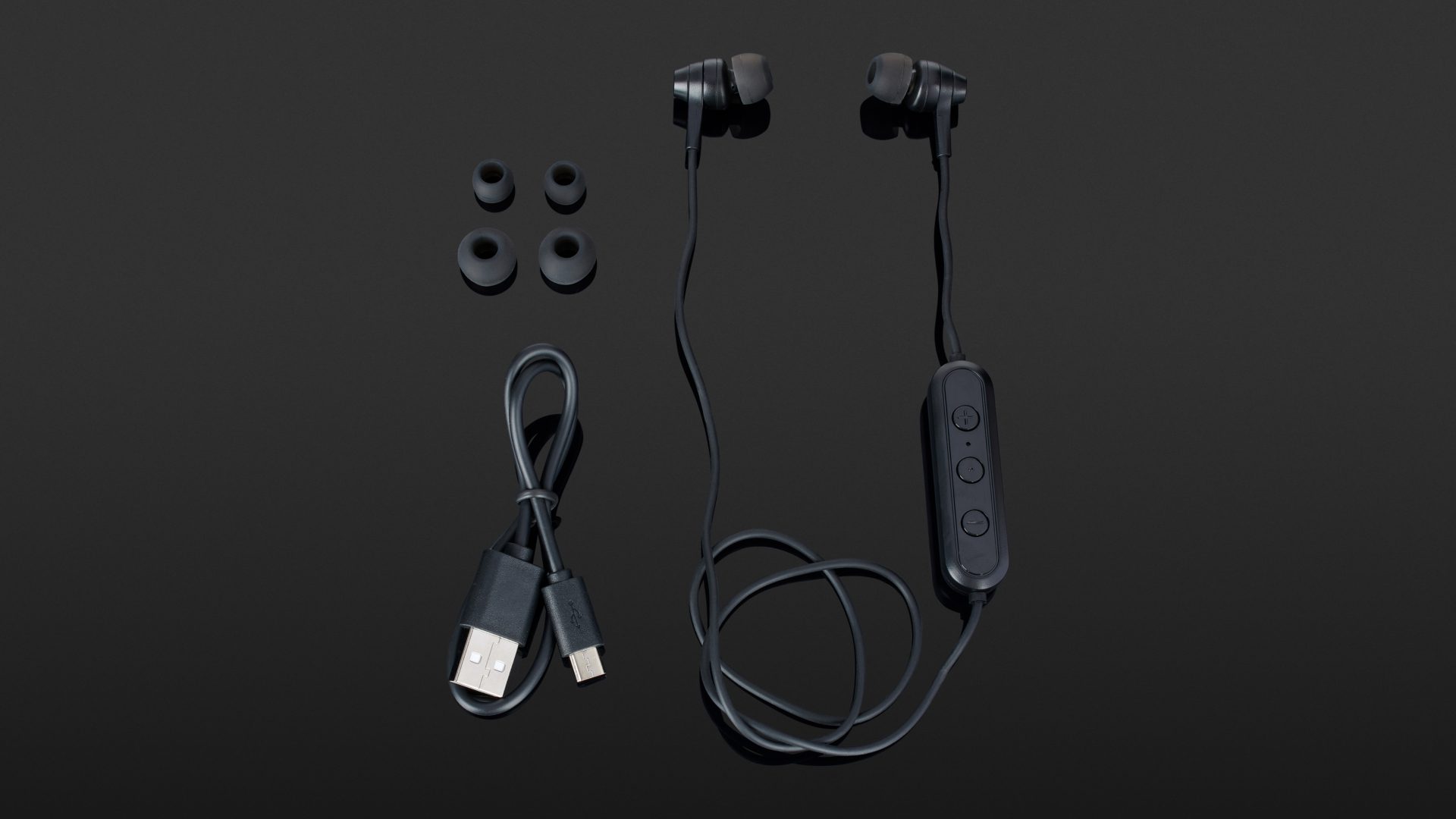 Im Lieferumfang befinden sich ein USB-Kabel zum Aufladen und eine Kurzanleitung sowie insgesamt drei Höraufsätze aus Gummi in verschiedenen Größen. Das Kabel zwischen den beiden Hörern fühlt sich solide und strapazierfähig an. Die Funktionstasten sind auf der rechten Seite des Kabels in dem Bluetooth-typischen Bedienblock untergebracht. Hier stehen die Standardfunktionen zur Lautstärkenkontrolle, zum Einschalten des Geräts sowie ein Mikrofon zum Telefonieren zur Verfügung. Leider ist auf der linken Kabelseite kein Gegengewicht angebracht, so dass der Hörer manchmal dazu neigt, etwas nach rechts zu rutschen. Das ist kein Beinbruch, aber auch keine Glanzleistung – andere Hersteller haben das smarter gelöst.